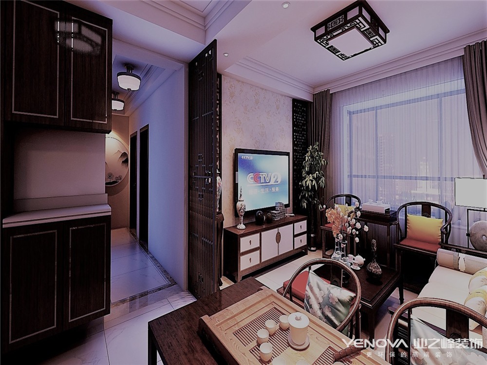 中式风格的特点,是在室内布置、线形、色调以及家具、陈设的造型等方面,吸取传统装饰"形"、"神"的特征,以传统文化内涵设计元素,革除传统家具的弊端,去掉多余的雕刻,融合现代西式家居的舒适,根据不同户型的居室,采取不同的布置。中国传统居室非常讲究空间的层次感。这种传统的审美观念在中式风格中,又得到了全新的阐释:依据住宅使用人数的不同,做出分隔的功能性空间,采用"哑口"或简约化的"博古架"来区分;在需要隔绝视线的地方,则使用中式的屏风或窗棂。通过这种新的分隔方式,单元式住宅就能展现出中式家居的层次之美。中式风格装修最大的特点还得属其的优雅,庄严。中式风格装修擅长以浓烈而深沉的色彩来装饰室内,比如墙面喜欢用深紫色或者接近黑色的红,地面和墙面采用深色的地板或者木饰,天花板也是深色木质吊顶还有淡雅的灯光。我们都知道深色端庄,优雅,尽显内涵,所以中式风格装修适用于有内涵,内心端庄优雅的人。