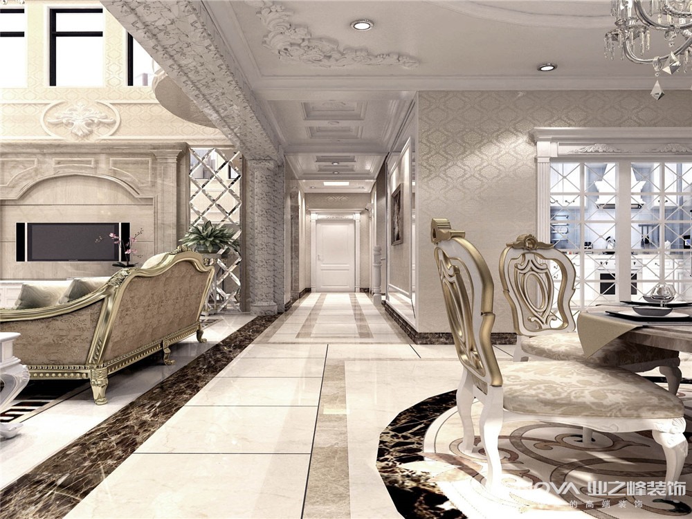 别墅在门的造型设计,包括房间的门和各种柜门,既要突出凹凸感,又要有优美的弧线,两种造型相映成趣,风情万种。灯饰在欧式风格的家居空间里占很重重要的组成部分,灯饰设计应选择具有西方风情的造型,比如壁灯,在整体明快、简约、单纯的房屋空间里,传承着西方文化底蕴的壁灯静静泛着影影绰绰的灯光,朦胧、浪漫之感油然而生。在欧式风格的房间可采用反射式灯光照明或局部灯光照明,置身其中,舒适、温馨的感觉袭人,让那为尘嚣所困的心灵找到了归宿。