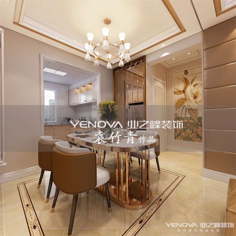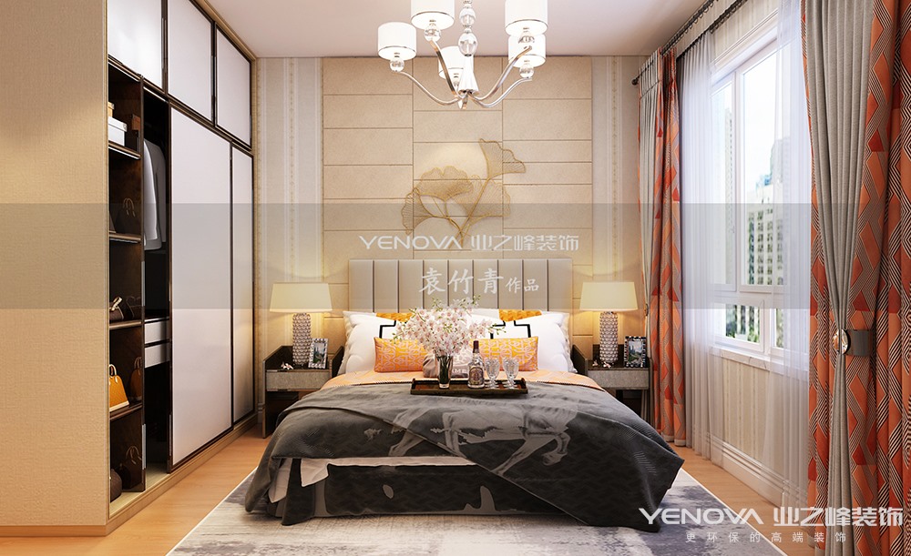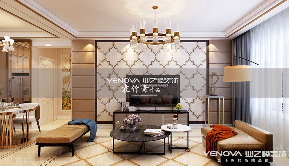 本案的主题为现代风格,简约俐落的质材铺叙与敞明大方的格局尺度,是轻奢风定调的设计居宅中,不可或缺的重要元素。在案例中,设计师以陈设艺术品及金属线条材质来营造大气、自然、轻奢的装饰美学氛围。墙面、地面、家具陈设等均以简洁的造型、精细的工艺为其特征,强调品质感和细节处理。在色彩搭配方面以暖色为主,温馨的客桌花束、明黄色的搭毯、直观大气的金属材质,带着淡淡的随意,随着轻轻的希冀让人感受到的是空间弥漫的温馨与舒畅,地面的地拼更体现了整体的感觉。卧室高雅自由的空间,充满了唯美的想象。色彩搭配上淡黄为主基调色,在浅色的空间里点缀了鲜艳的黄色、冷淡的蓝色,变得更加有活力性。设计师毫不吝啬的用心,衣柜和书桌更大大提高了储物功能。