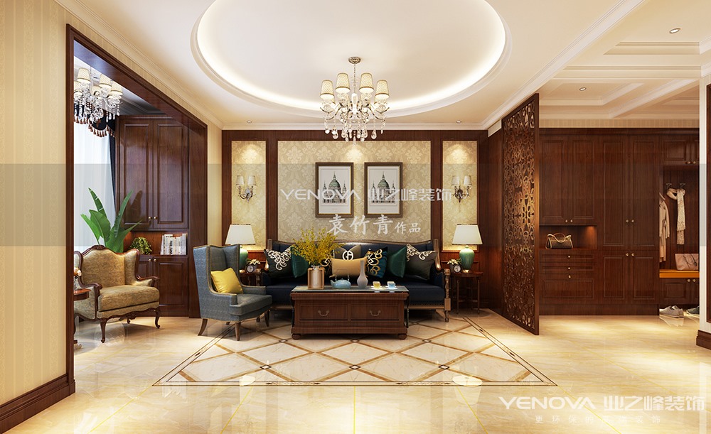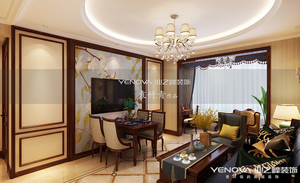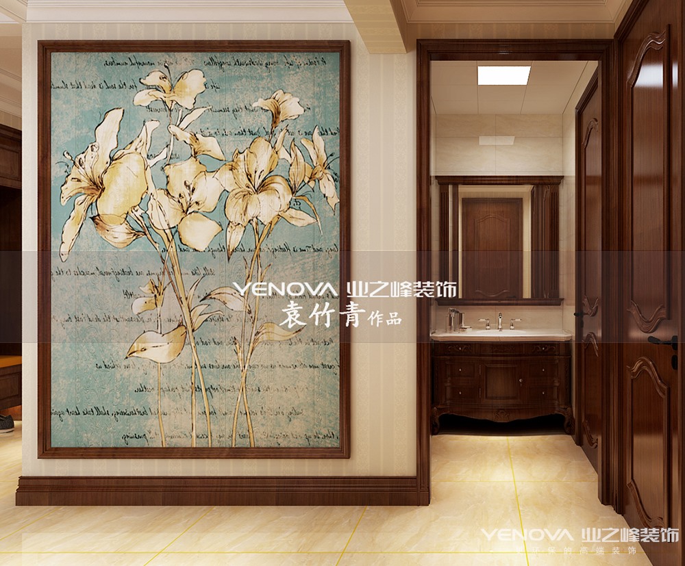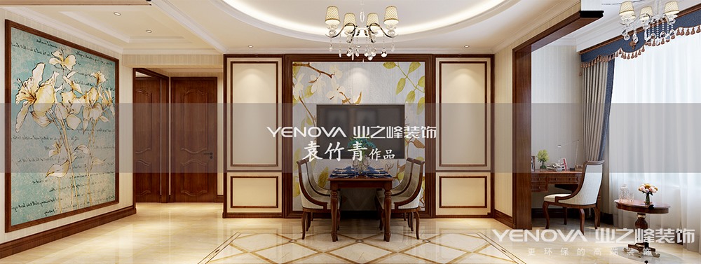 本案的主题为现代美式风格,简约俐落的质材铺叙与敞明大方的格局尺度,是轻奢风定调的设计居宅中,不可或缺的重要元素。在案例中,设计师以陈设艺术品及金属线条材质来营造大气、自然、轻奢的装饰美学氛围。墙面、地面、家具陈设等均以简洁的造型、精细的工艺为其特征,强调品质感和细节处理。在色彩搭配方面以暖色为主,温馨的客桌花束、简洁的地拼、直观大气的金属材质,带着淡淡的随意,随着轻轻的希冀让人感受到的是空间弥漫的温馨与舒畅。