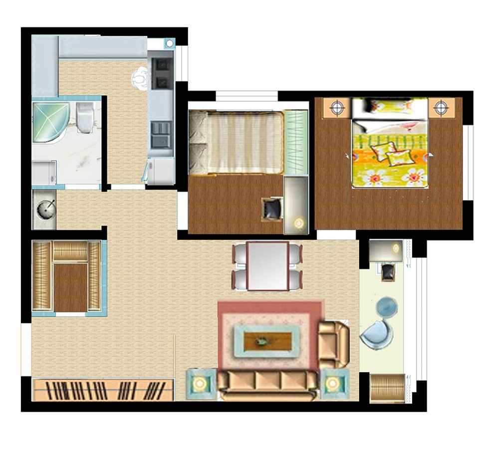 小区:爱达九溪 面积:95㎡ 户型:二居 风格:美式风格