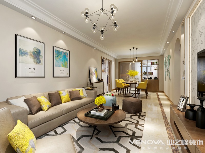 设计师在室内陈设上采用一些灵活多变的手法。比如一些画框组合会充满平面设计感,而他们除了可以固定在墙上装饰以外,还可以摆放在浅层板上。这样方便更换,非常灵活,会不断地带来新的视觉享受。