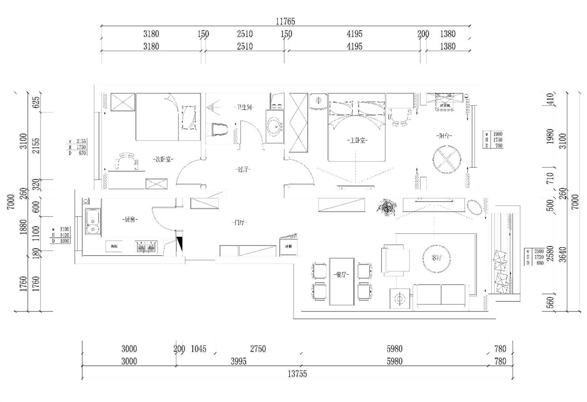 71㎡二居现代简约风格武汉大学信息学部教工宿舍