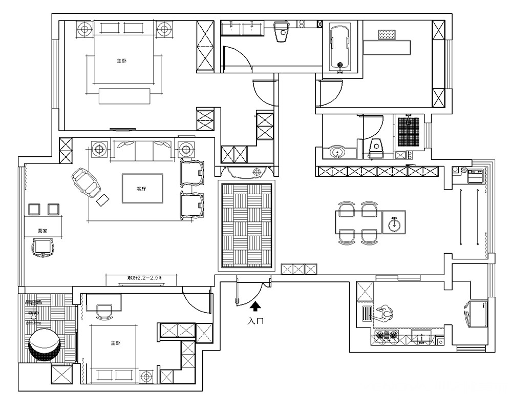 本案的设计风格为法式轻奢,营造典雅、自然、高贵的气质、浪漫的情调是本案的主题。简约质朴的设计风格是众多人群所喜爱的,生活在繁杂多变的环境里已是烦扰不休,而简单、自然的生活空间却能让人身心舒畅,感到宁静和安逸;籍着室内空间的解构和重组,便可以满足我们对悠然自得的生活的向往和追求,让我们在纷扰的现实生活中找到平衡,缔造出一个令人心驰神往的写意空间。