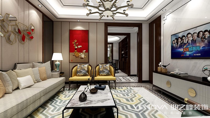 新中式设计与身俱来东方文化,以诗情写意的手法将传统元素的文化底蕴不动声色间展露无遗,整体透着诗于画的韵味。搭配结构上的整洁利落,让新中式调剂出空间的生活美学。通过陈列和搭配,赋予生活东方的大气,延续传统设计的章法,让生活在现代精致与东方古韵之间平衡出不一样的美感。