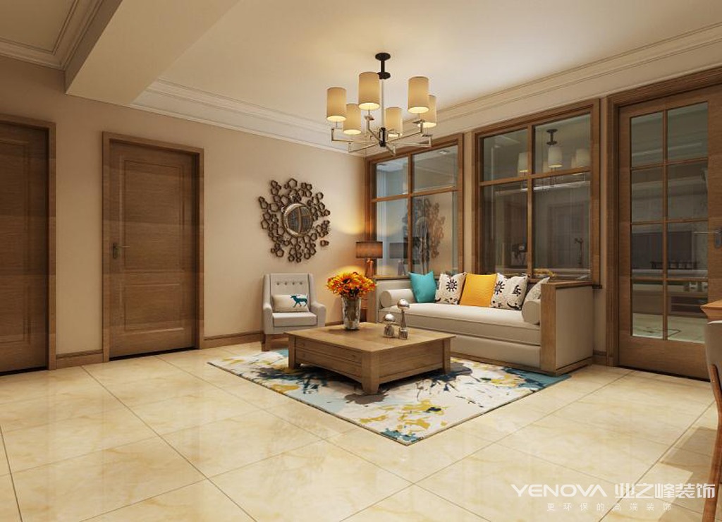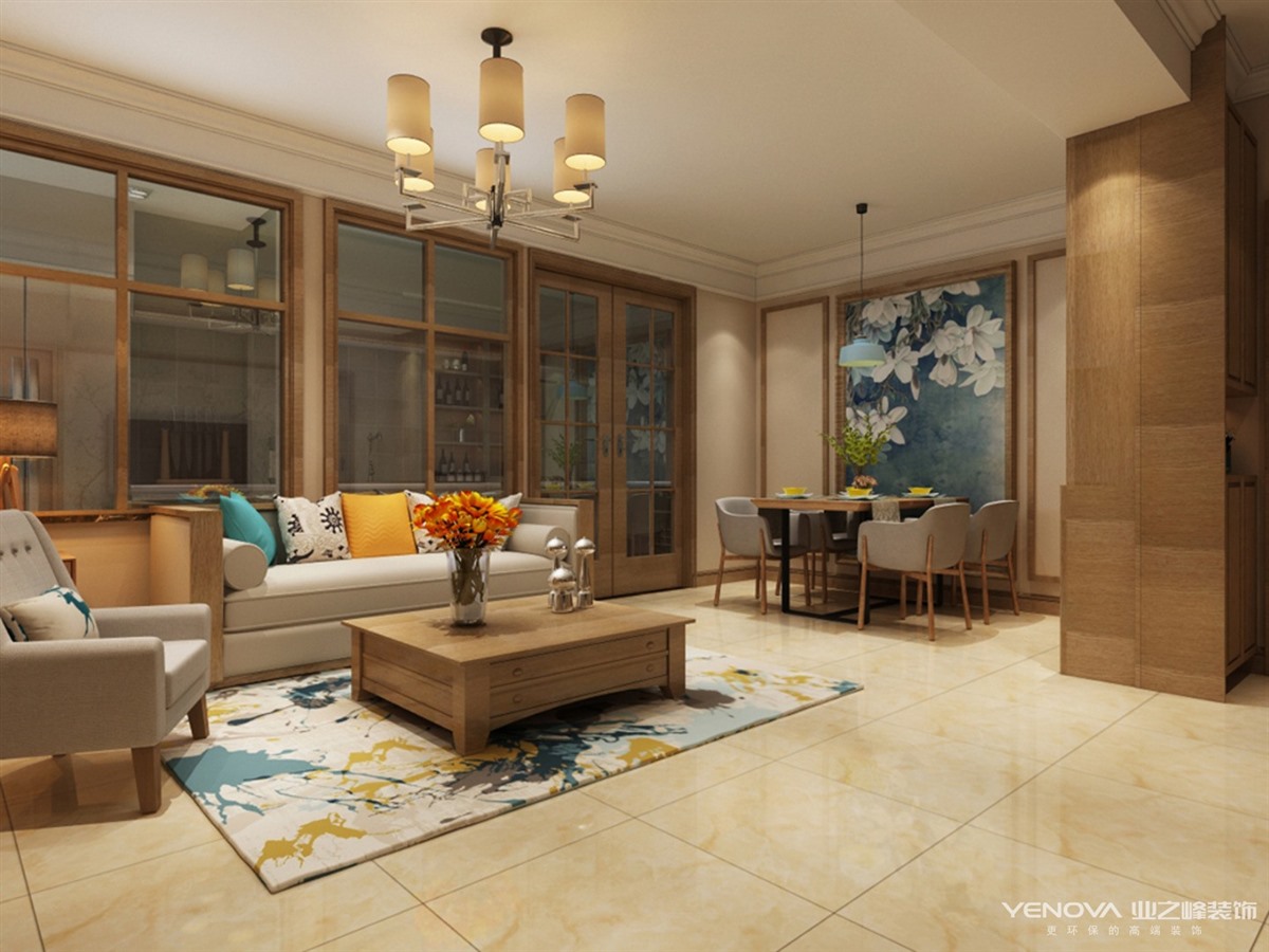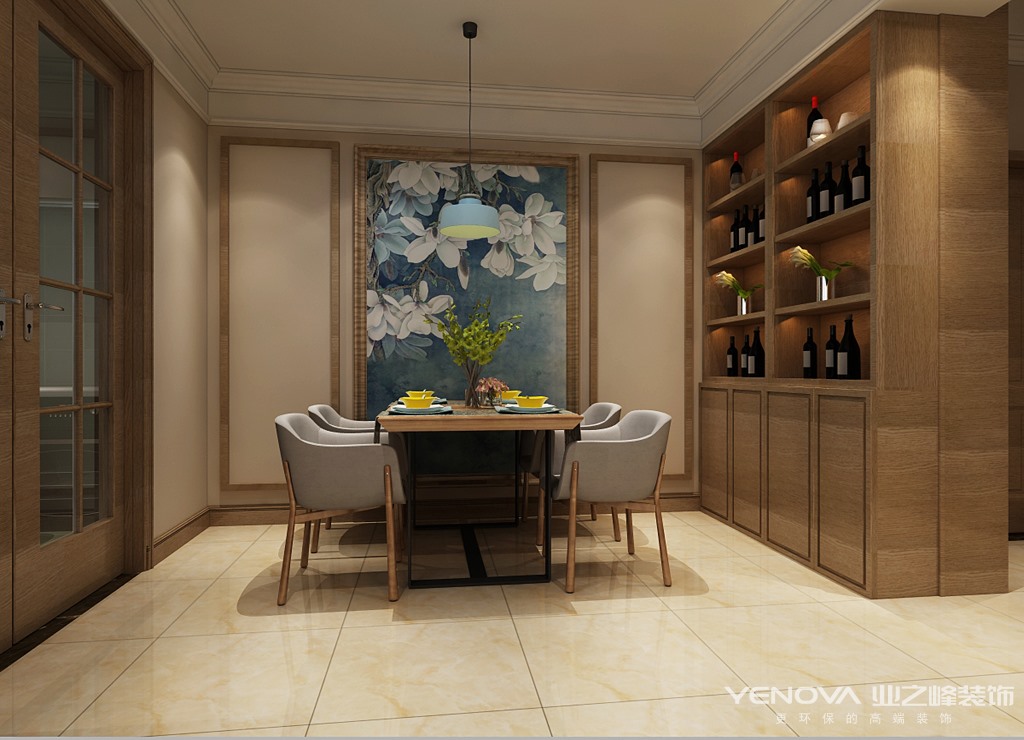 本案在整体的色彩选择上以庄重沉稳的木色为主,体现中式文化深沉、厚重的底蕴。中式风格在整体的布局上虽然最求对称庄重,而在细节上有使用代表自然情趣、花鸟鱼虫等的壁纸,取其美好的寓意来表现人们对美好生活的追求。