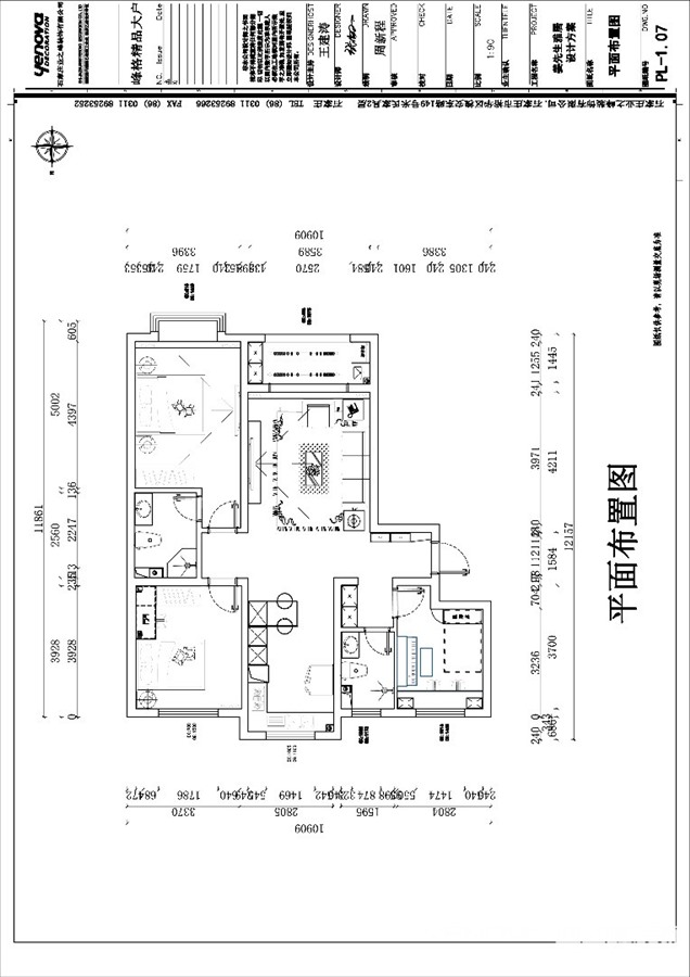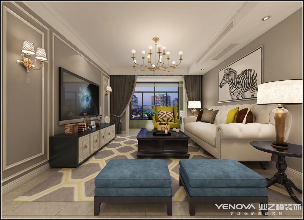 小区:荣盛华府 面积:110㎡ 户型:三居 风格:现代简约风格