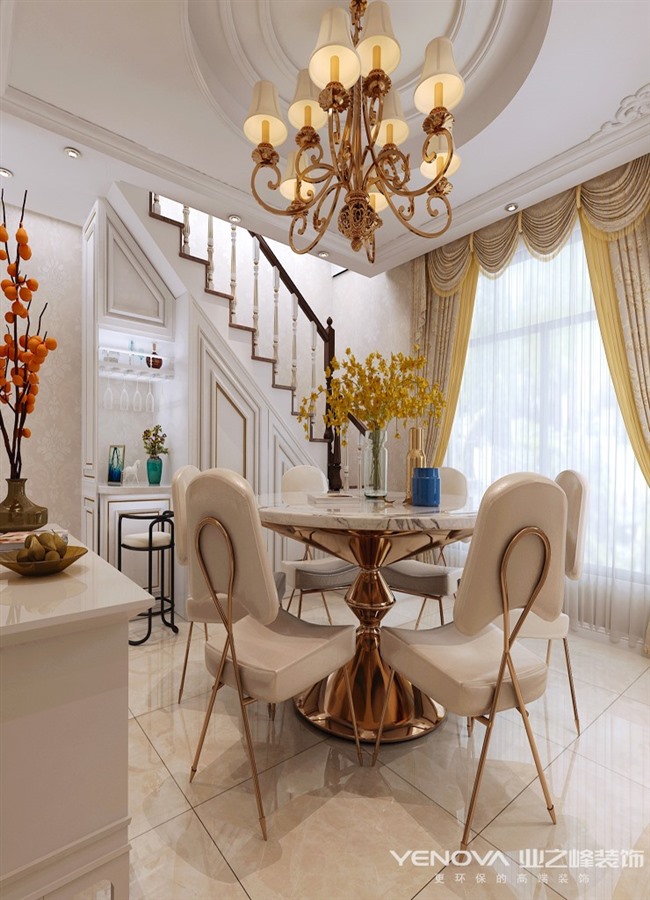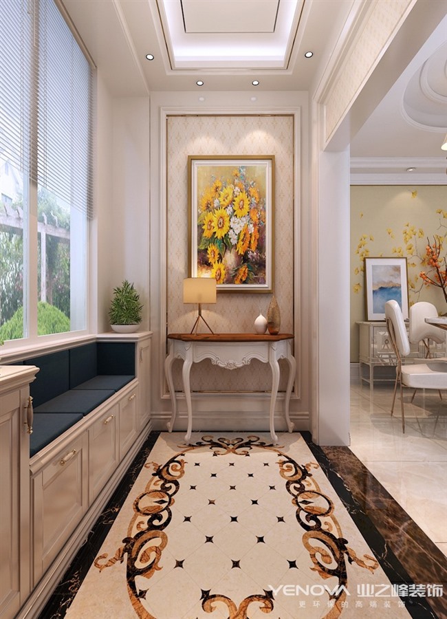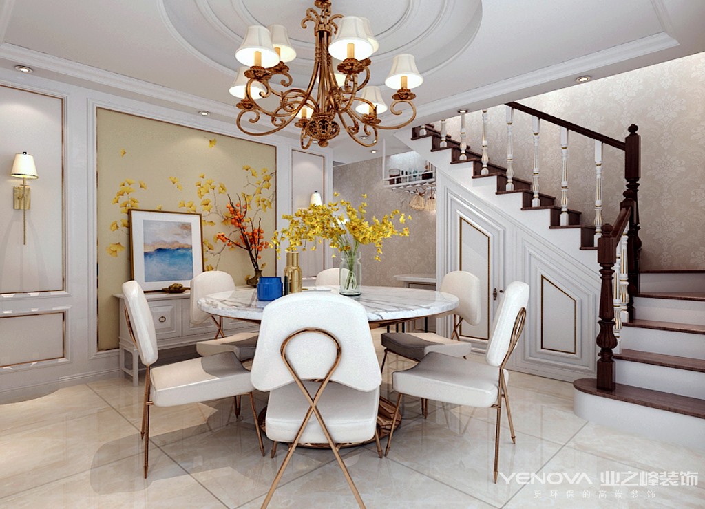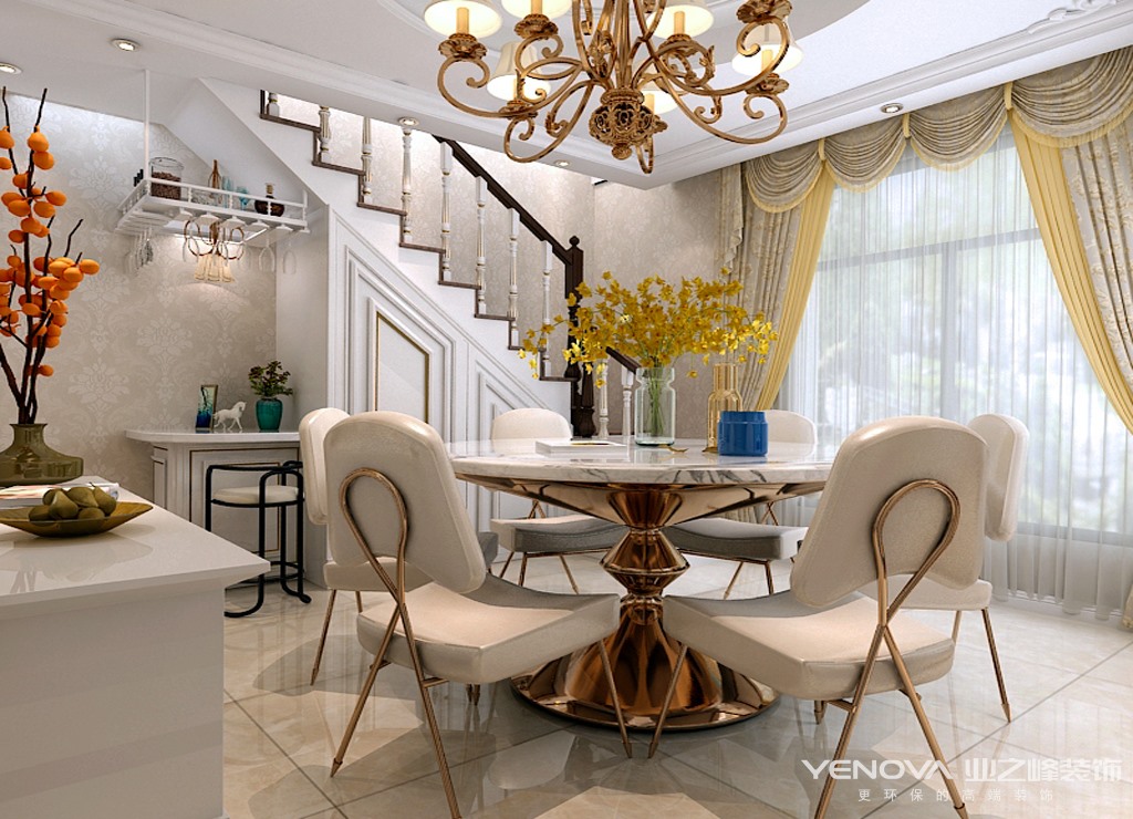本案采用简欧风格,即有欧式设计风格的一些元素,又充分利用了现代简约设计的某些优势。打破以往欧式深沉的色彩,大量使用的白色调,把欧式风格设计融入现代设计中浑然一体家居风格。