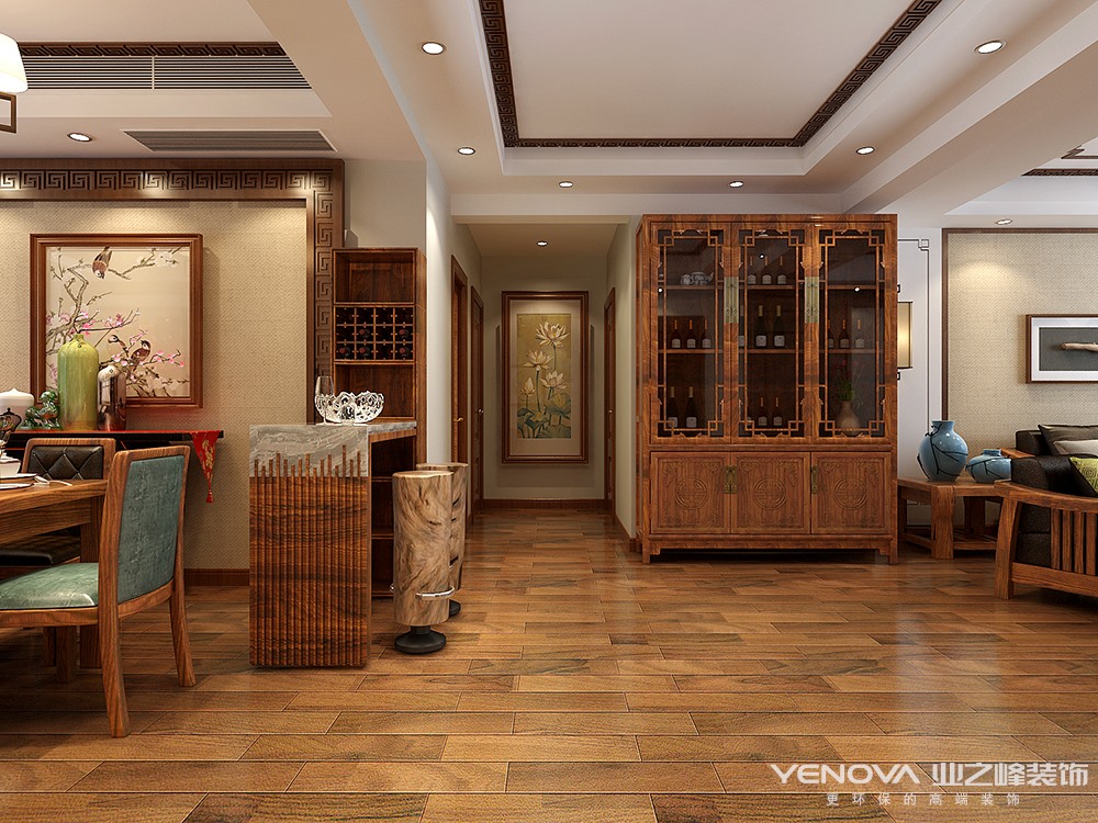 本案以传统的中式文化为底蕴,将清雅含蓄且代表中国传统家具中的经典元素与新中式抽象美感相结合,以一种东方人的美学观念控制节奏循序渐进,使整个案例格调优雅平和内敛,将东方文化的美感融入现代生活,尽显大家风范