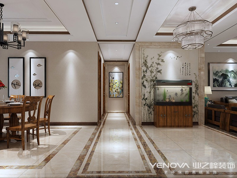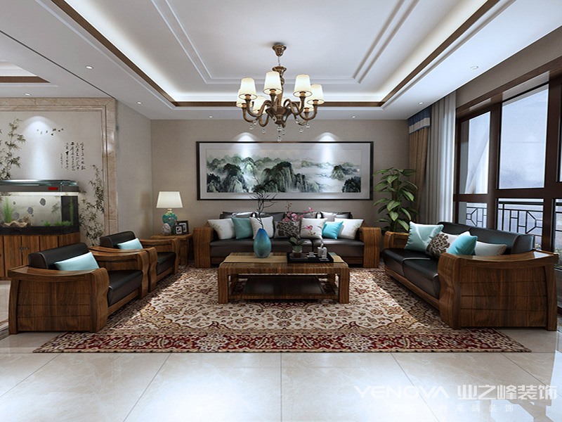 风格定义为新中式风格,新中式,顾名思义是由中式风格演化而来。一提到中式风格大家一定会联想到富丽堂皇的宫殿,雕梁画栋,方枘圆凿,价值连城的古董文玩字画,以及厚重且贵重的木质家具。没错,传统的中式装饰的整体特征就是典雅、庄重,在当今这个从简的时代有些不搭,同时也被冠以“贵族装饰”的标签,属于小众类别。而新中式,就以一个“新”字拆分中式风格中的沉重感和富贵之气,同时添加入现代元素,是整体风格呈现出庄重又不繁重,大气又不俗气的既视感.