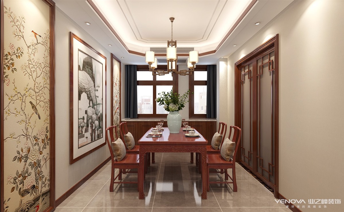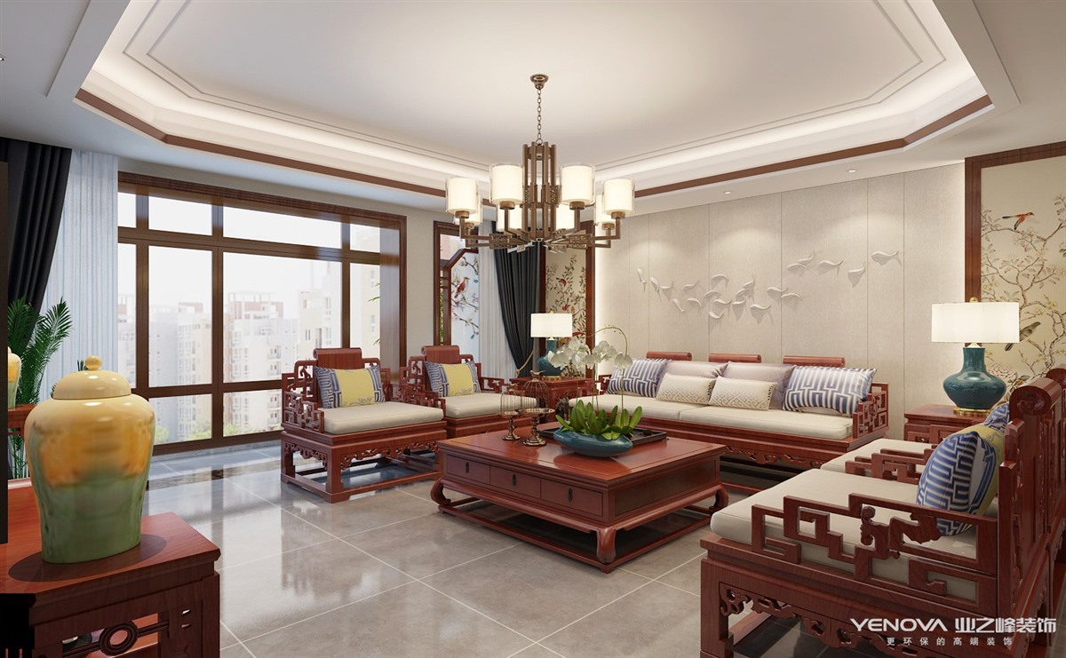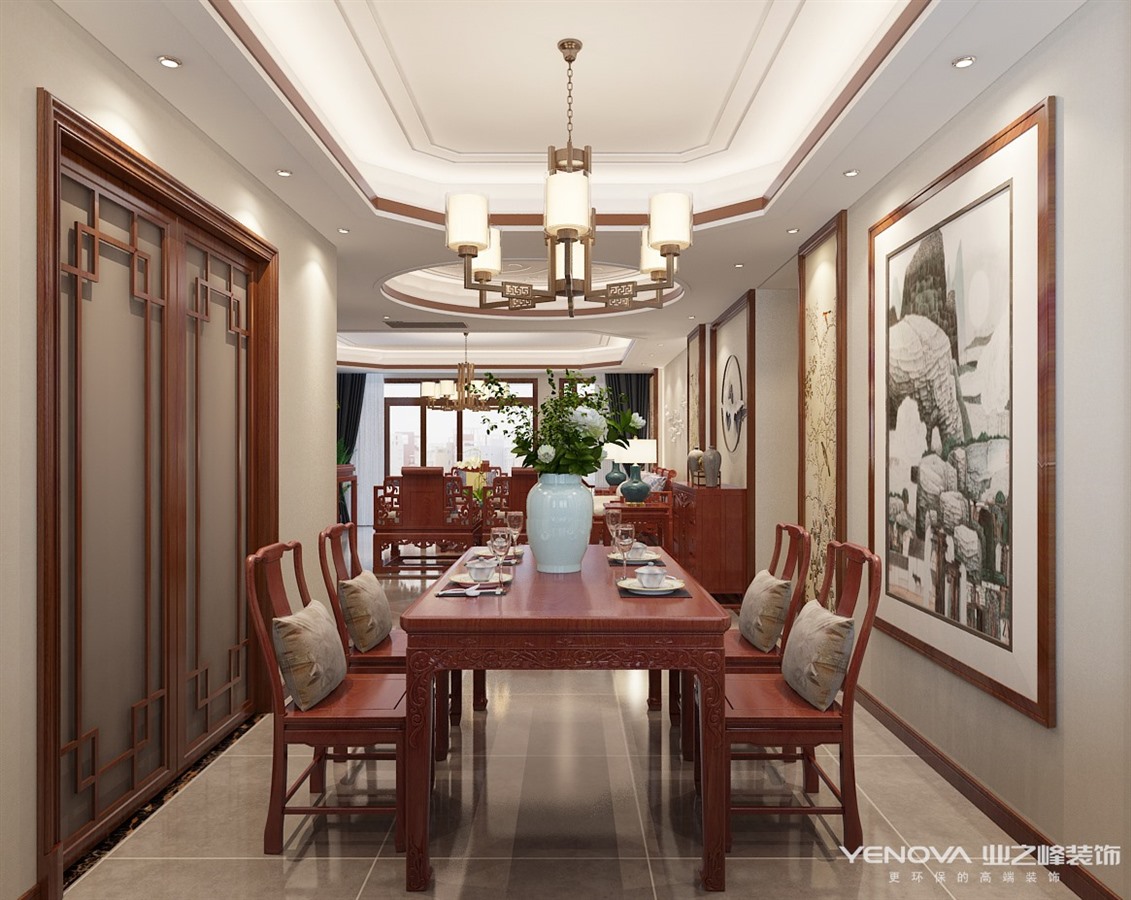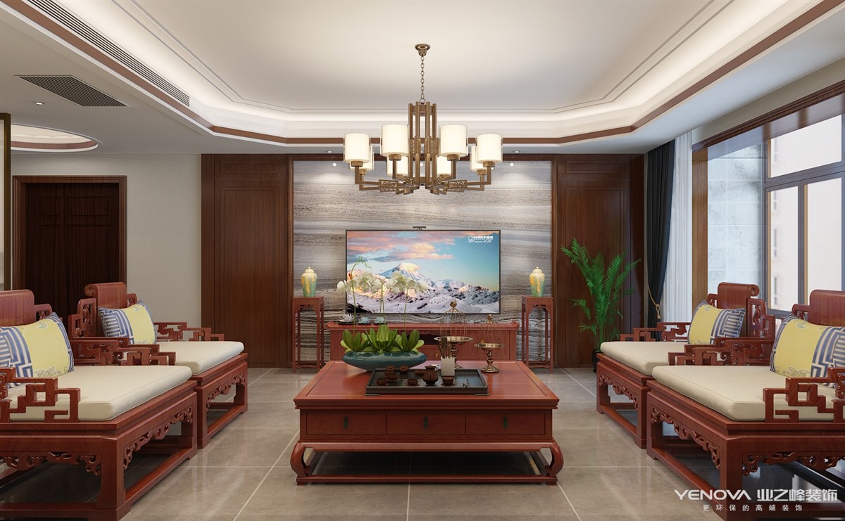 以简洁明快的设计风格为主调,在总体布局方面尽量满足业主生活上的需求,主要装修材料为水曲柳擦色饰面,以实木红色线条的简介装饰及各种雕花隔断景点,创造一个温馨,健康的家庭环境。