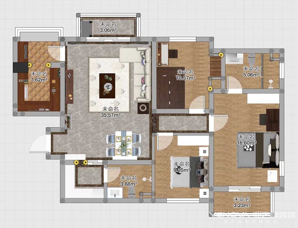 小区:华苑 面积:110㎡ 户型:三居 风格:美式风格