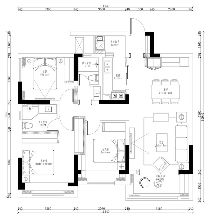 110㎡三居美式风格太行瑞宏朗诗金沙城
