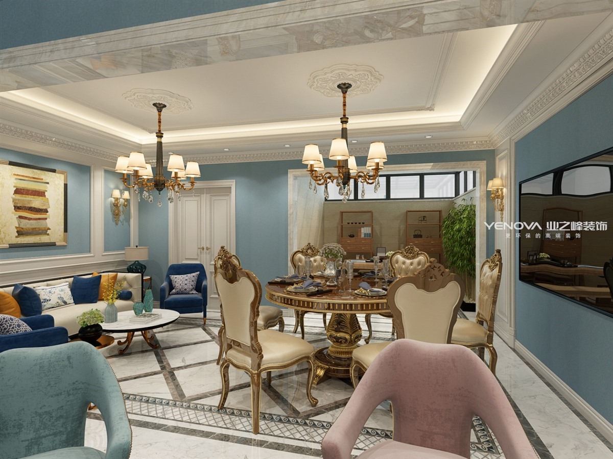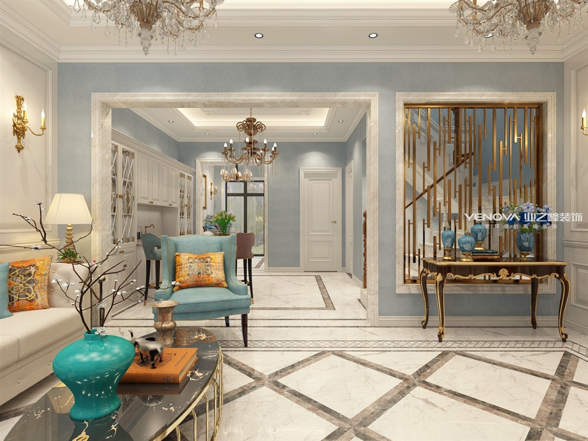 这套别墅的面积比较大,原结构户型设计比较完美。欧式的居室有的不只是豪华大气,更多的是惬意和浪漫。通过完美的典线,精益求精的细处理,带给家人不尽的舒服触感,实际上和谐是欧式风格的最高境界。同时,欧式装饰风格最适用于大面积房子,若空间太小,不但无法展现其风格气势,反而对生活在其在其间的人造成一种压迫感。