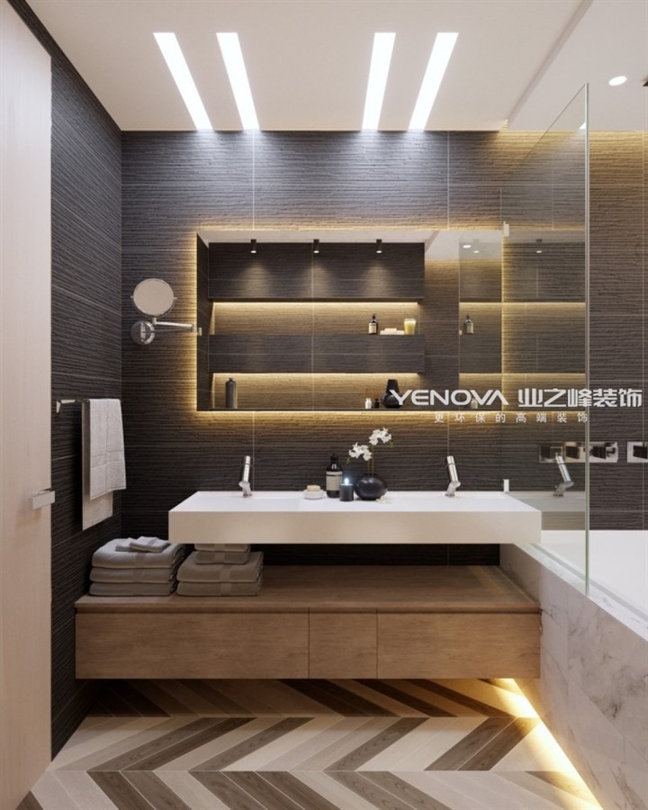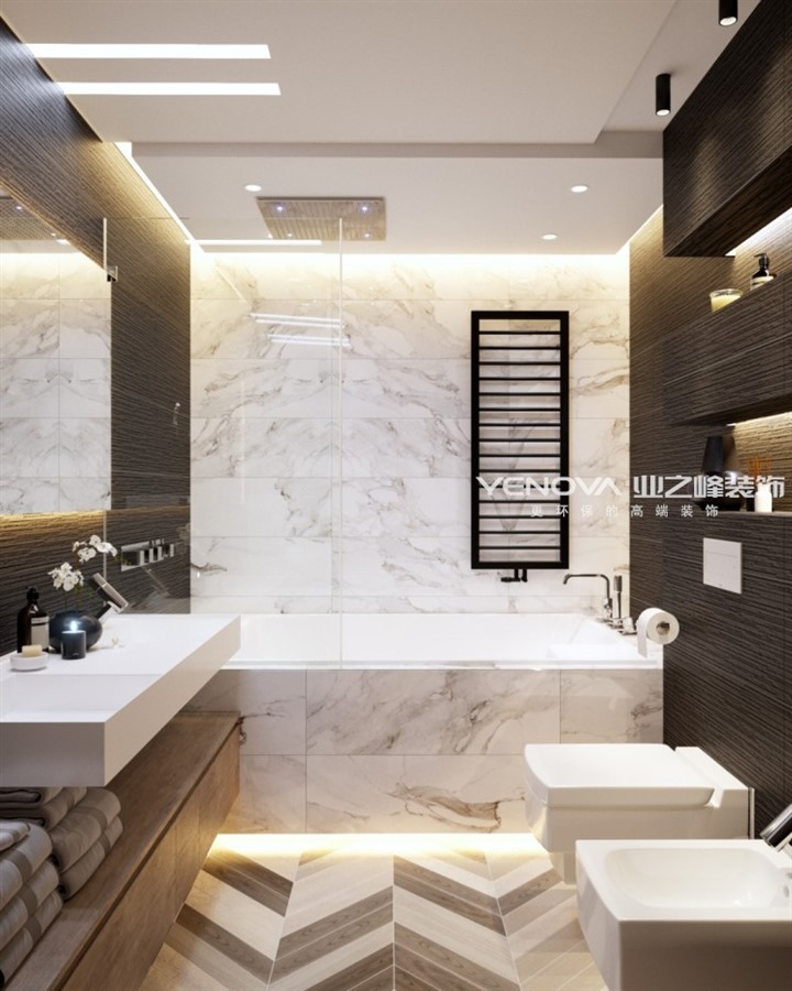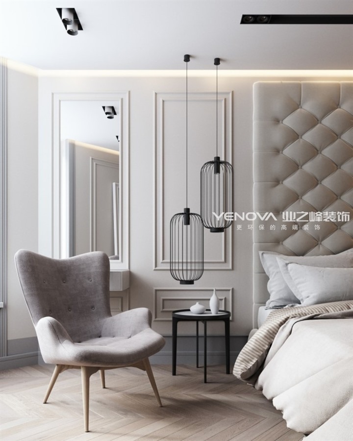 此案以现代风格为起点,配合不同材质的表现力,打造出生动亮眼的生活空间,呈现明快而尊贵的家居风格。摒弃传统的古典奢华,回归生活本真,家居空间给人时尚简约、气质优雅且不失温馨舒适。一方面保留了材质、色彩的大 致风格,仍然可以很强烈地感受传统的历史痕迹与浑厚的 文化底蕴,同时又摒弃了过于复杂的肌理和装饰,简化了 线条。