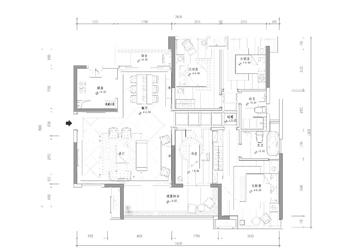 小区:怡丁苑 面积:175㎡ 户型:四居 风格:简欧风格