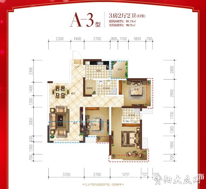 小区:置地城一期 面积:88㎡ 户型:二居 风格:现代简约风格
