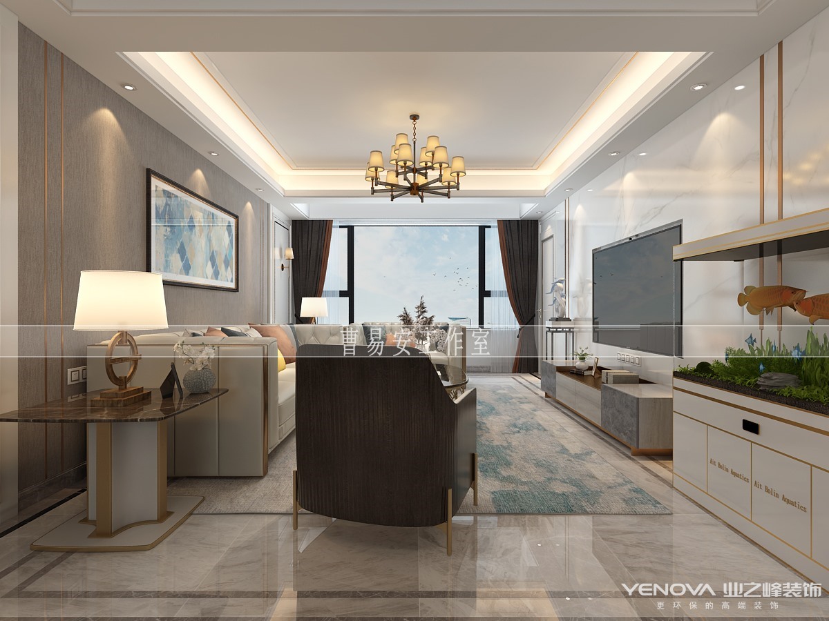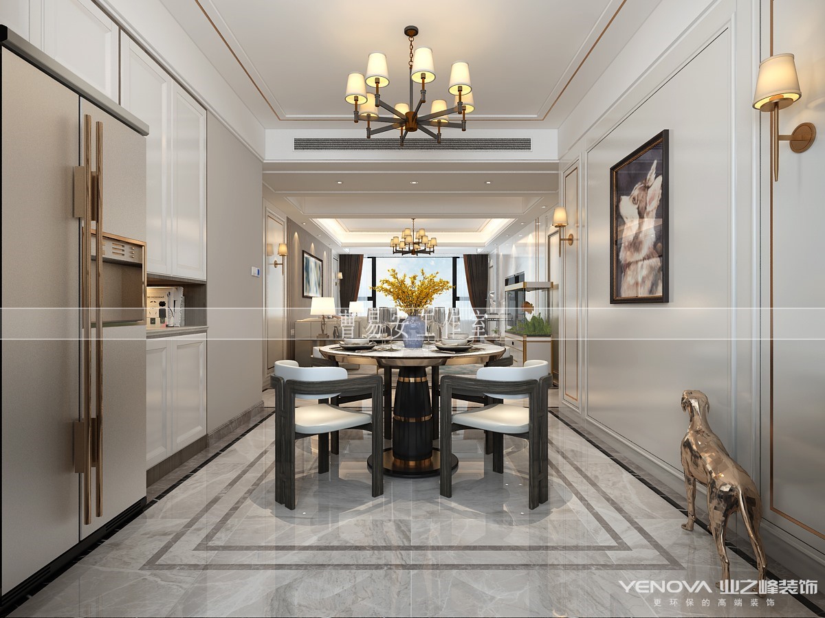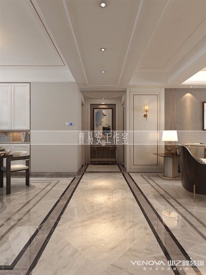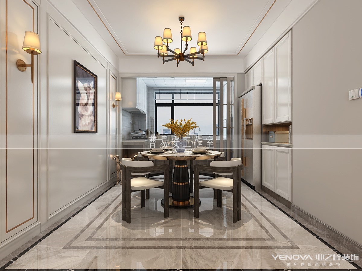 整体设计在现代理性中透射出人文艺术的温度。客厅,作为公共区域的中心位置,通过形体的摆放和材质的选择,形成一个非常温暖且舒适的交流互动区。颜色上以高级灰为肌底,予人冷静安谧的视觉感受,大面积白色的运用与精致的金属材质成为贯穿于空间中的艺术力量。轻盈的橙色跳跃其上点亮空间视觉,低调内敛的米白色布艺沙发与悦动高调的造型单椅形成强烈的反差,使得空间更加灵动富有趣味性。