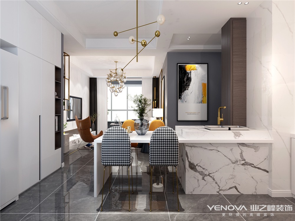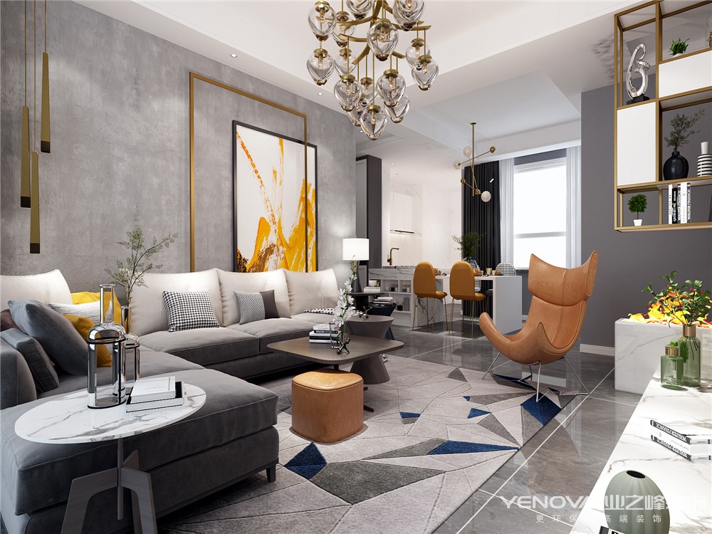 本案的设计风格为当下最流行的轻奢风,营造低调、自然、高贵的气质,灰色温馨,高级浪漫的情调是本案的主题。设计手法上从整体到局部、从空间到室内陈列塑造,都给人一种精美印象,从头到尾秉承了“有质感才有时尚”的原则。一方面保存了材质、色彩的大致感受,淡色和灰木色家具有助于凸起轻奢和高级,格调一样的壁纸、地毯、家具、岛台等装饰织物安置的家居,蕴涵着简约质感带来的轻奢时尚,同时又摒弃了传统风格过于复杂的肌理和装饰,接受现代轻奢风格的长处,简化了线条,凸显简练美,出力塑造尊贵又高级的居家情调。
