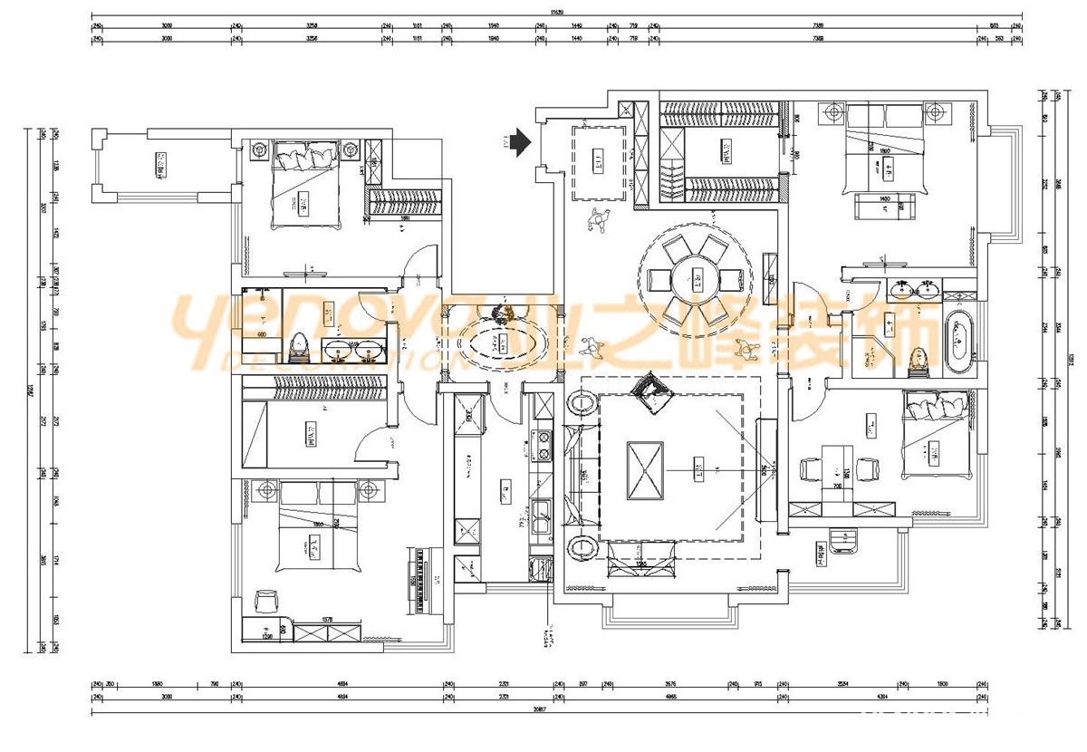 小区:晓港名城 面积:220㎡ 户型:平层 风格:法式风格