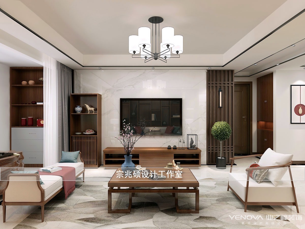 小区:中海社区御峰官邸 面积:140㎡ 户型:三居 风格:新中式风格