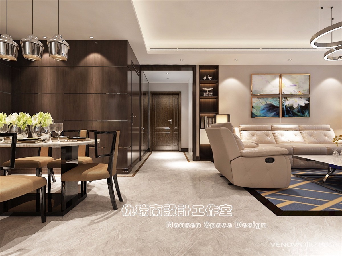 小区:世茂天城 面积:140㎡ 户型:三居 风格:现代简约风格