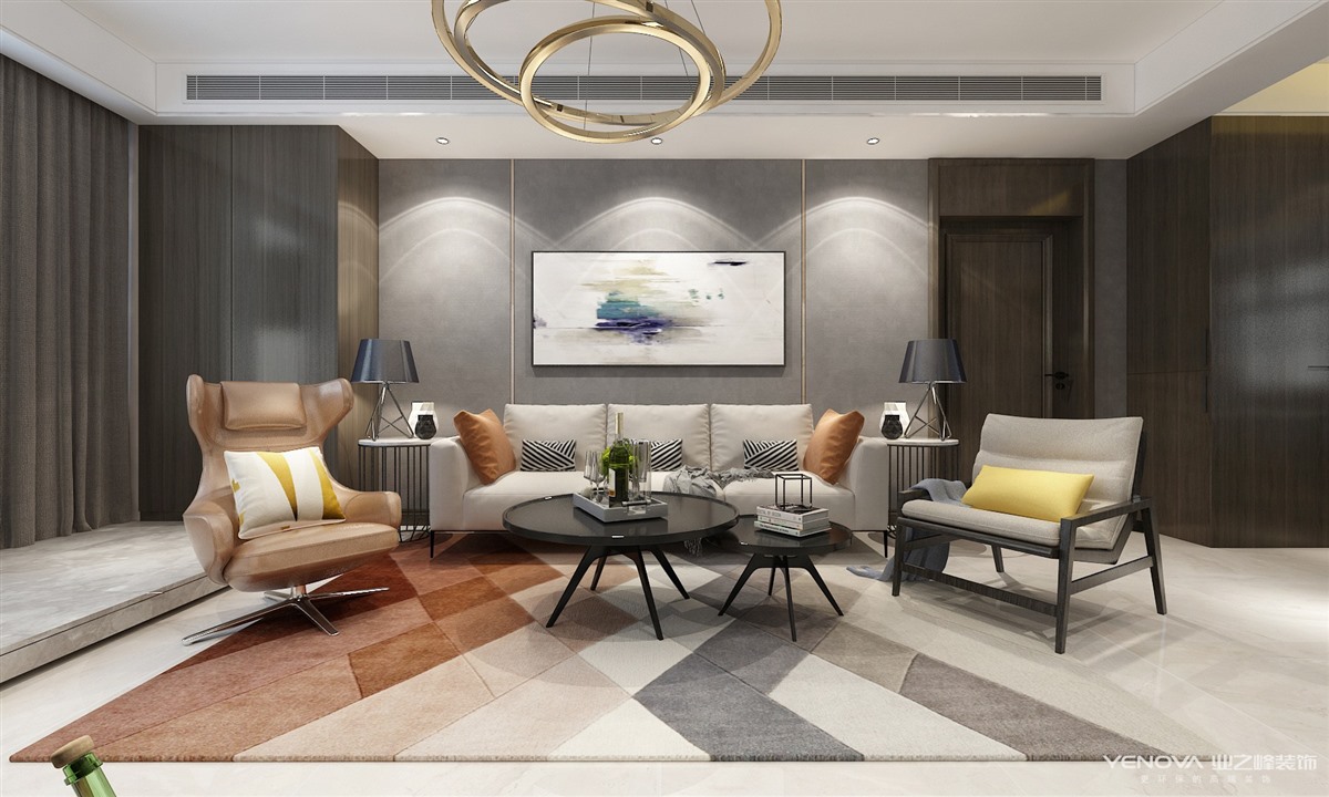 小区:财富中心 面积:145㎡ 户型:三居 风格:现代简约风格