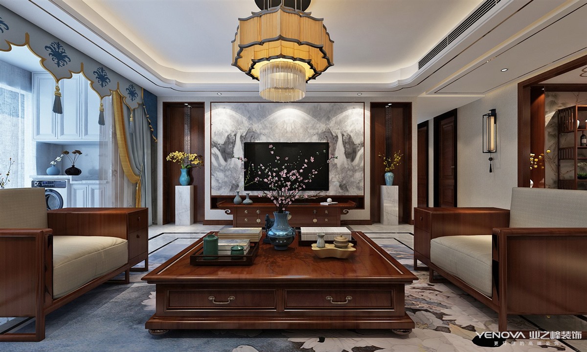 新中式风格设计是在传统的中式风格的基础之上演变而来的,以中国古典的传统文化作为支撑,巧妙地融入现代的时尚元素,二者有机结合,独具特色,营造出一种独有的中式浪漫与温馨的生活环境。这种设计理念在很大程度上保留了中国的传统设计风格,同时将一些具有时代特征的鲜活元素加入其中,脱离了中式的过于保守,使家居空间更富有活力与时尚感,真正做到“取其精华”“推陈出新”。