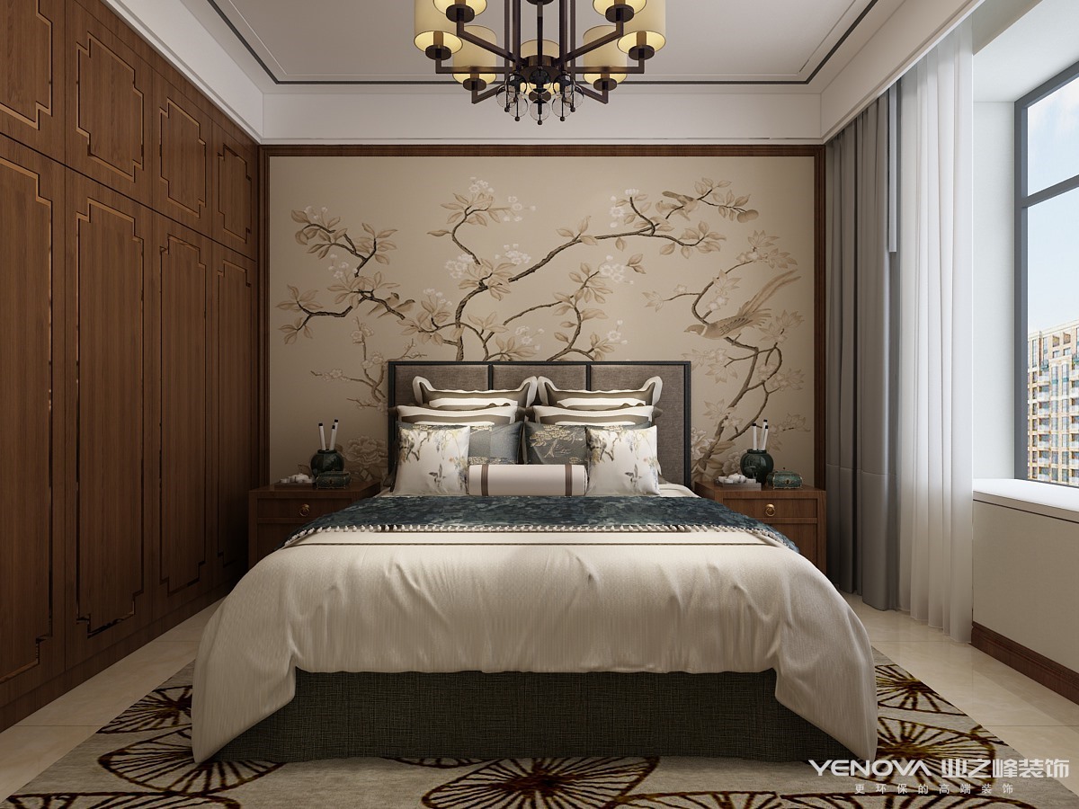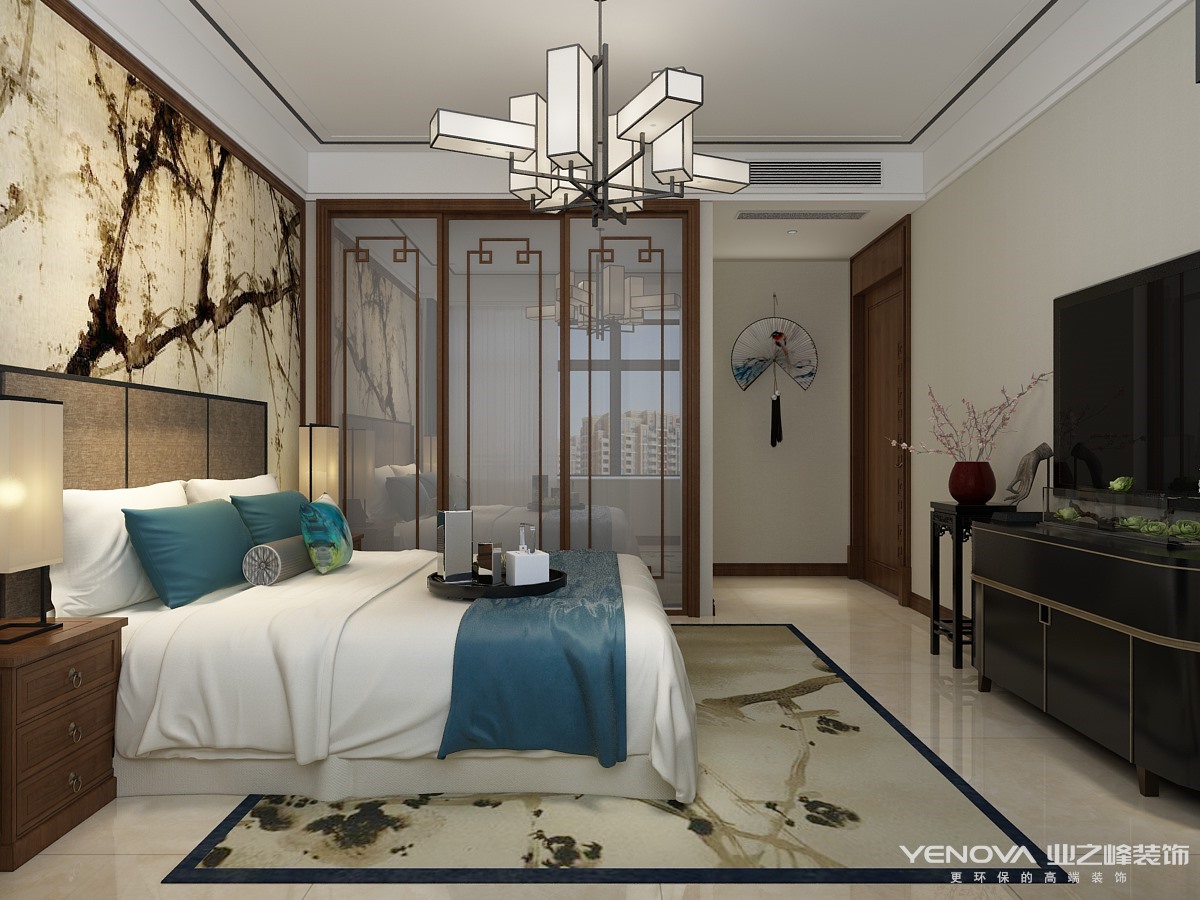 装饰造型:主要采用硬朗简洁的直线条,空间具有层次感。既使得中式家具古典、质朴的内涵显现,又符合现代人追求的时尚感、实用性。