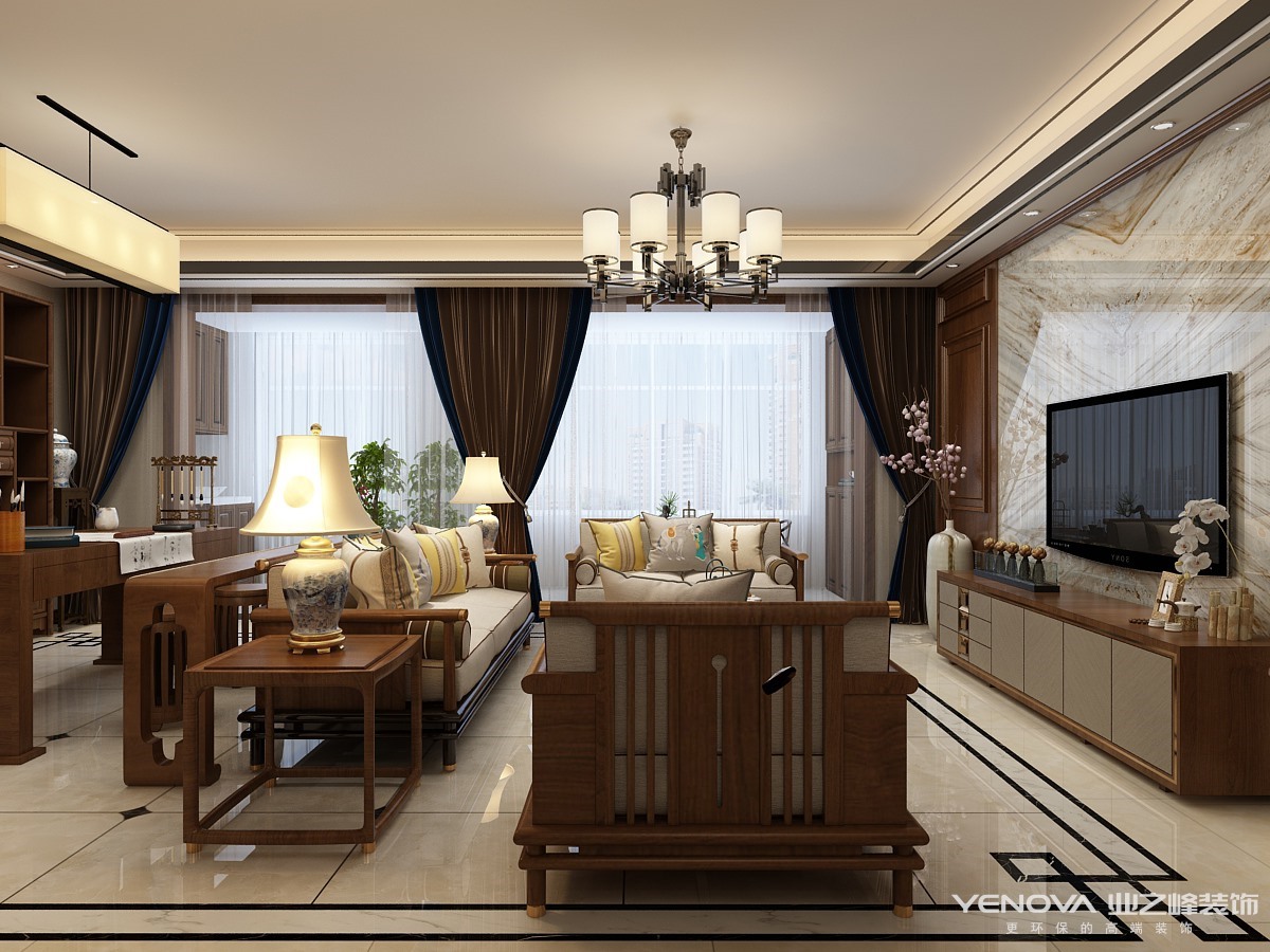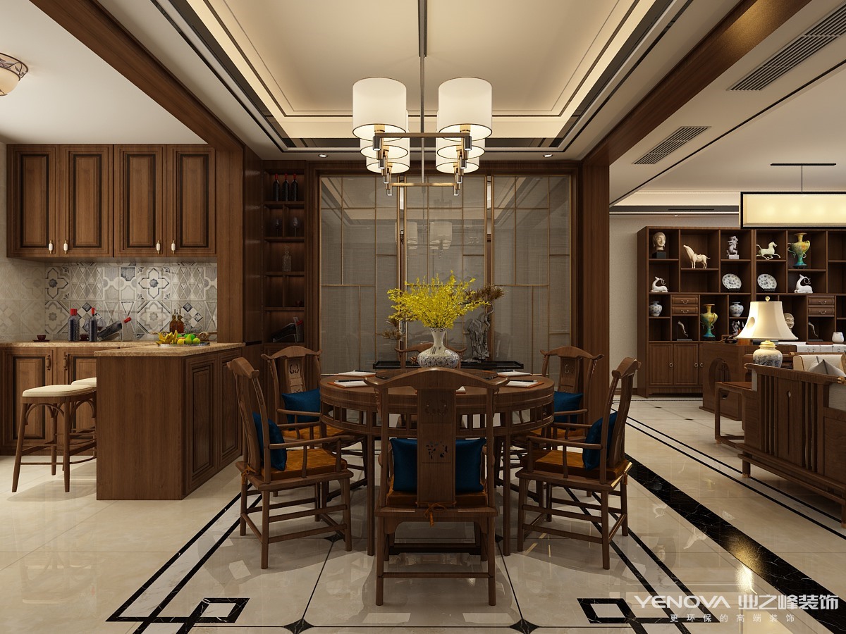 小区:绿地·海珀天沅 面积:200㎡ 户型:平层 风格:新中式风格