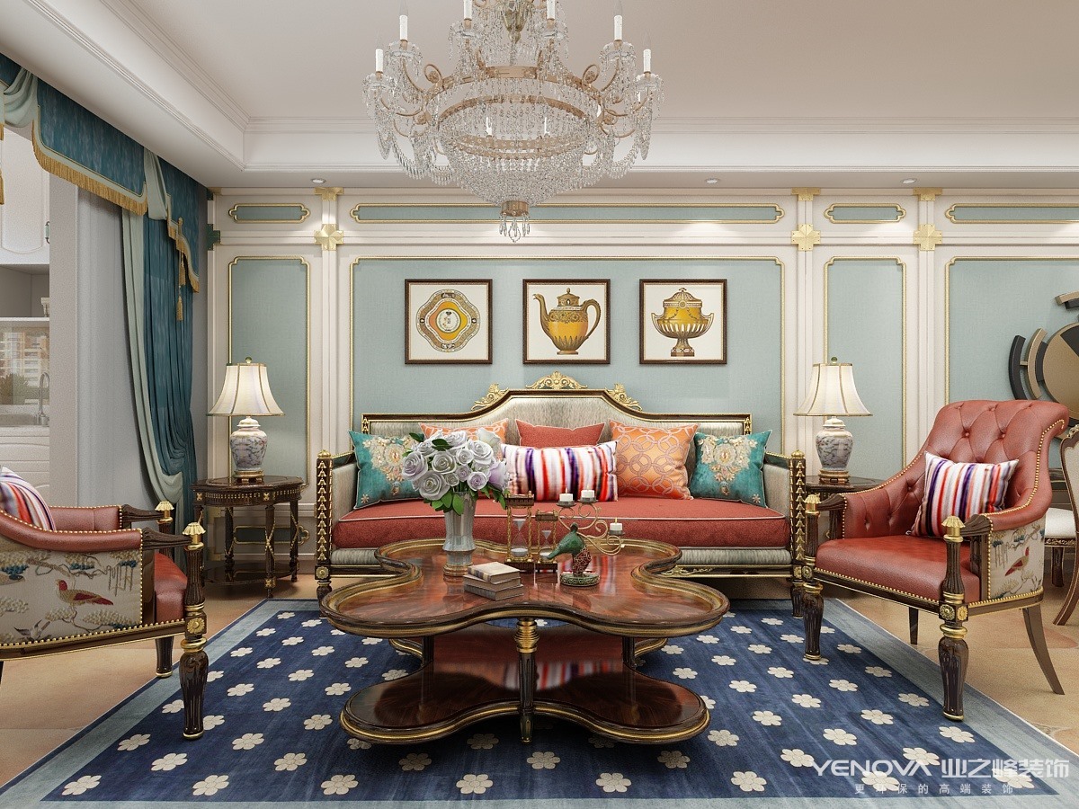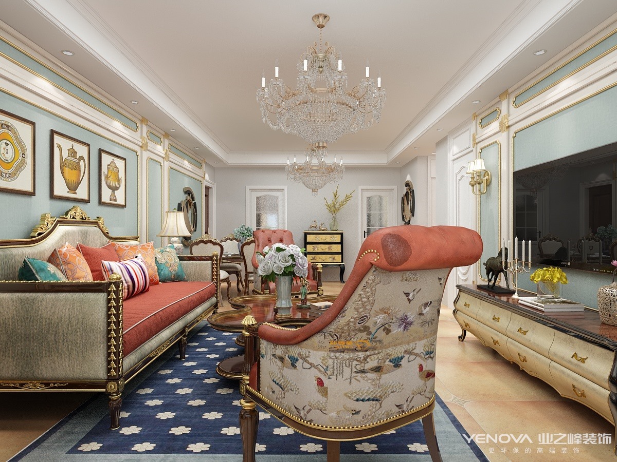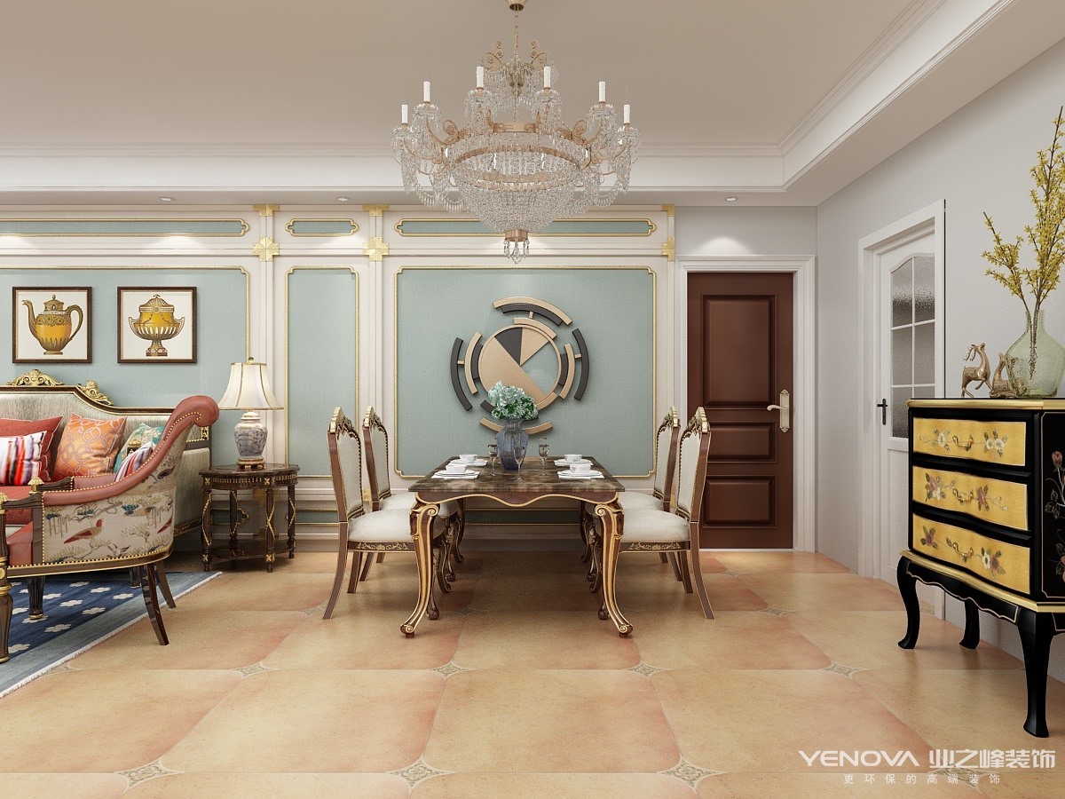 在设计上,墙面大面积的使用了古典欧式色彩的壁纸配合经过提炼的欧式线条,使欧式不再是遥远的过去,而是鲜活时尚的品味象征。减掉了复杂的欧式护墙板使用了提炼过的石膏线勾勒出线框,把护墙板的形式简化到极致。
