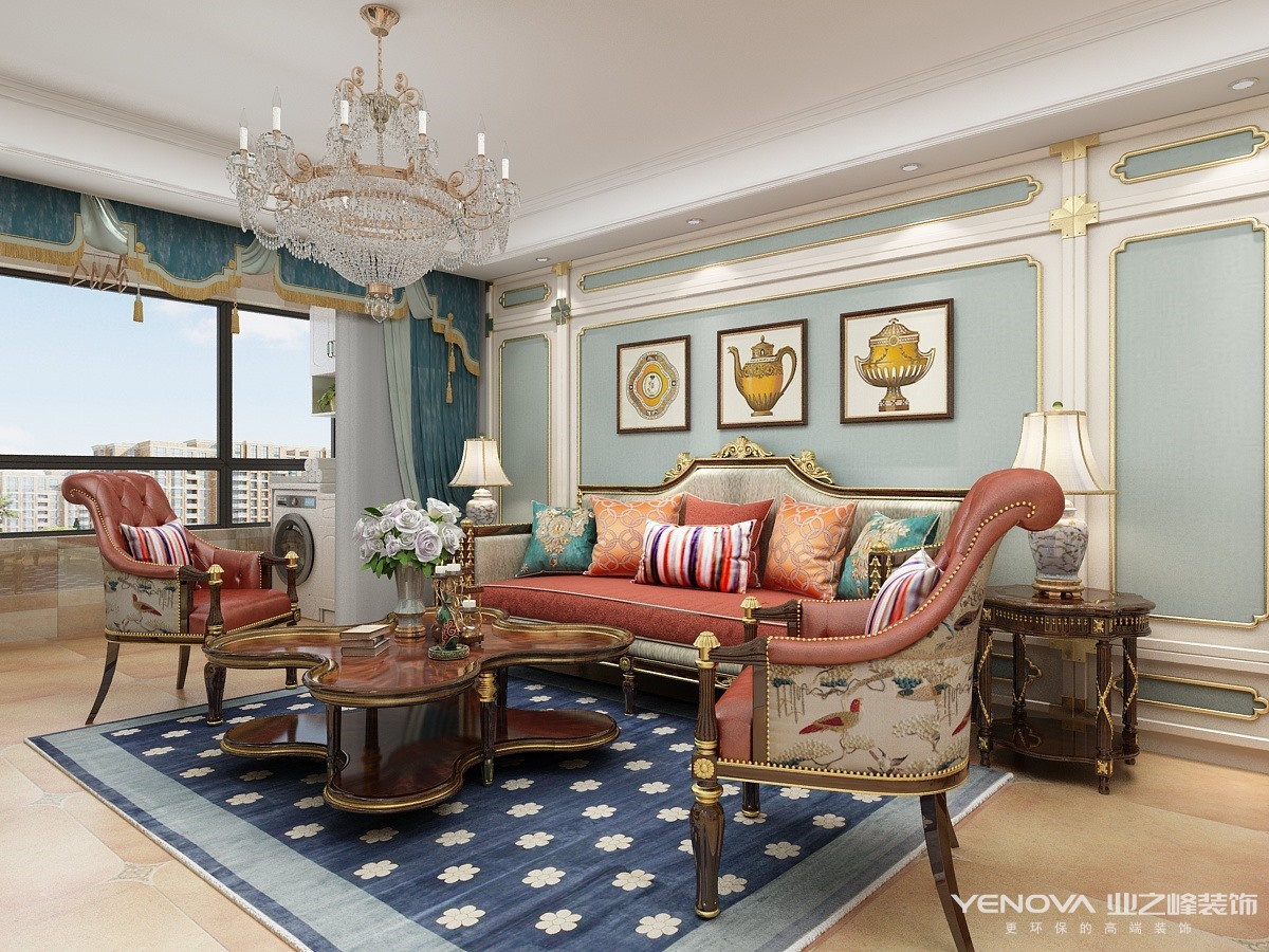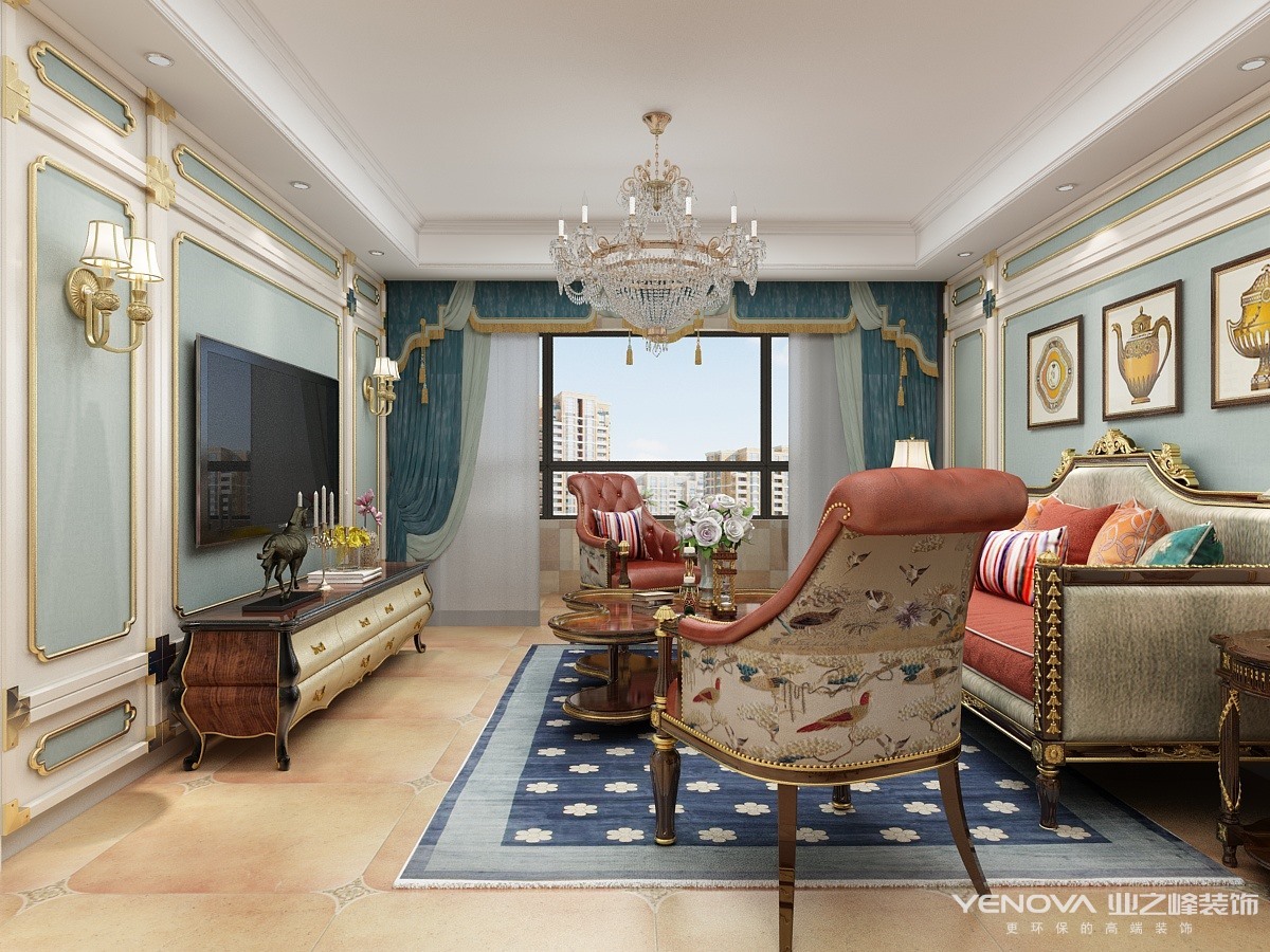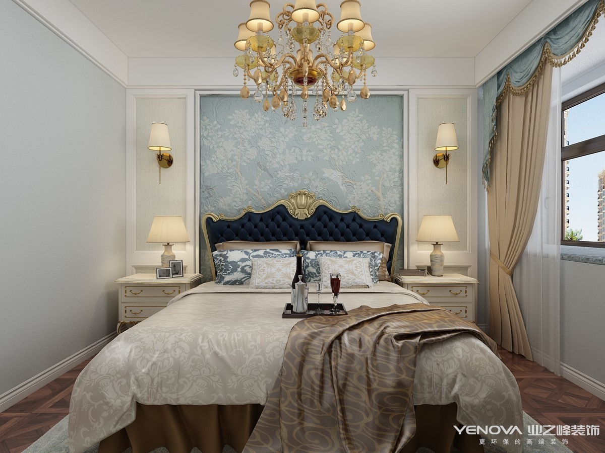 在设计上,墙面大面积的使用了古典欧式色彩的壁纸配合经过提炼的欧式线条,使欧式不再是遥远的过去,而是鲜活时尚的品味象征。减掉了复杂的欧式护墙板使用了提炼过的石膏线勾勒出线框,把护墙板的形式简化到极致。