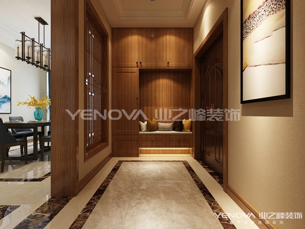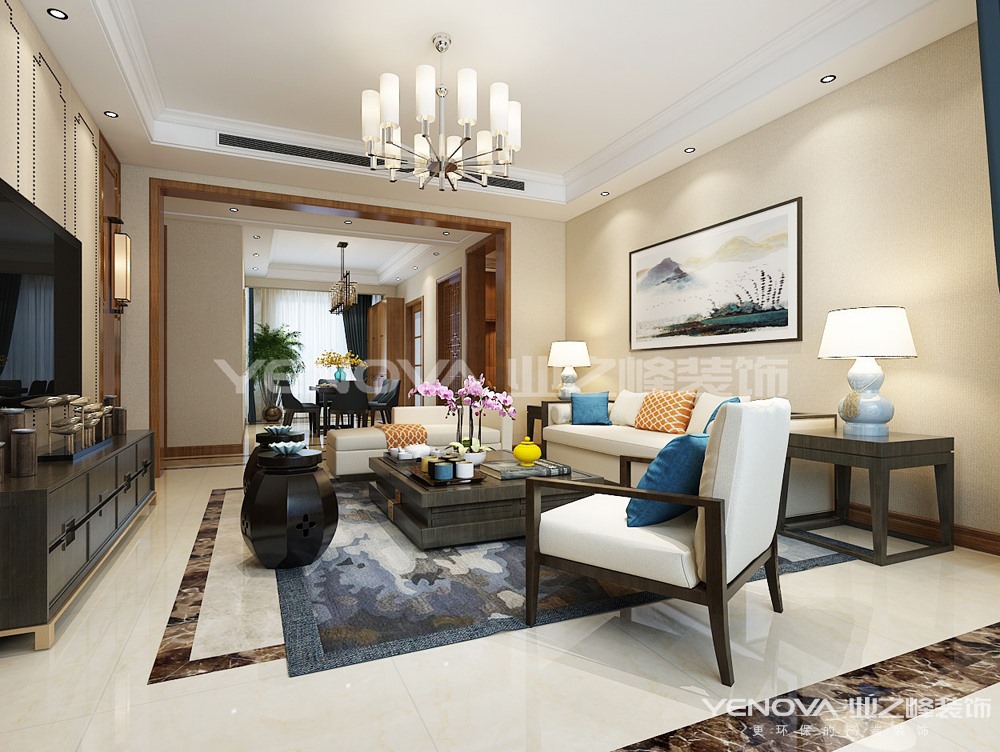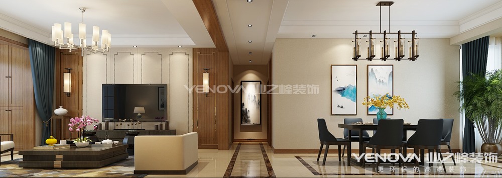 本案为南阳凯旋公馆189平米新中式风格装修效果图案例。中式风格设计,这是我国独有的设计风格,将传统文化元素融入到住宅设计当中去,打造极富中式情调的住宅空间。设计师为住宅选择了简洁、硬朗的线条设计,富有历史感。空间多为木质材料,彰显了属于中国人内在的质朴、诚实,也打造出了沉稳厚重的装修效果。使用具有传统古典感觉的装饰画以及隔断等,增添了中式传统的感觉。以及卧室的床头画和吊灯都使用的中式元素,既有中式家具的文化内韵,又满足了我们对于现代化设计的舒适追求。