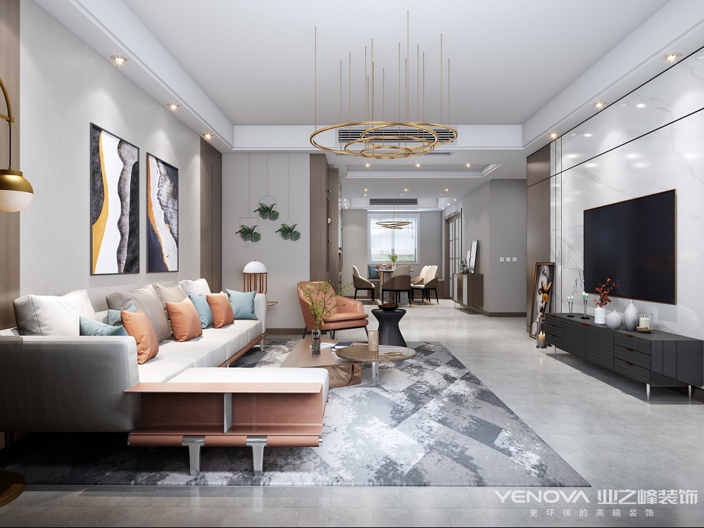 小区:湖光山色 面积:140㎡ 户型:三居 风格:现代简约风格