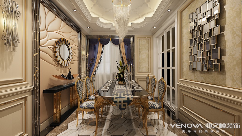欧式奢华风格中,最大特点就是它的尊贵典雅,它的一点一滴均用心缔造,超越于平常的富贵气息,源源不断的发散开来。金碧辉煌是欧式奢华风格的魅力,碎花布艺的沙发,镀金镶边的家具,清闲透彻的挂画,富贵迷人的地毯,这是欧式奢华的风情,用餐区位于客厅,简单的圆桌和四张餐椅,同样象征轻奢的金色镀边,欧式风格明显的餐椅花纹,清新自然的绿植,它是现代家居潮流的宠儿。房间自然是简洁为主,一张书桌一把椅子,一张床一个玩偶抱枕,就已经足够了