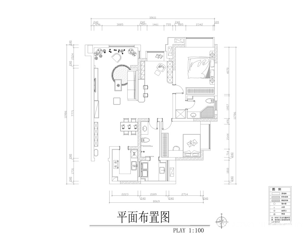 户型二房二厅两卫一厨的多层住宅。环境优美,为三口之家为依据进行设计,突出温馨且不失时尚之感。采光通风的单一,室内相对闭塞是原屋的最大弊端。