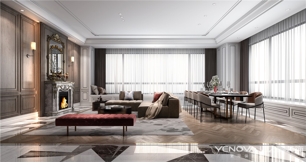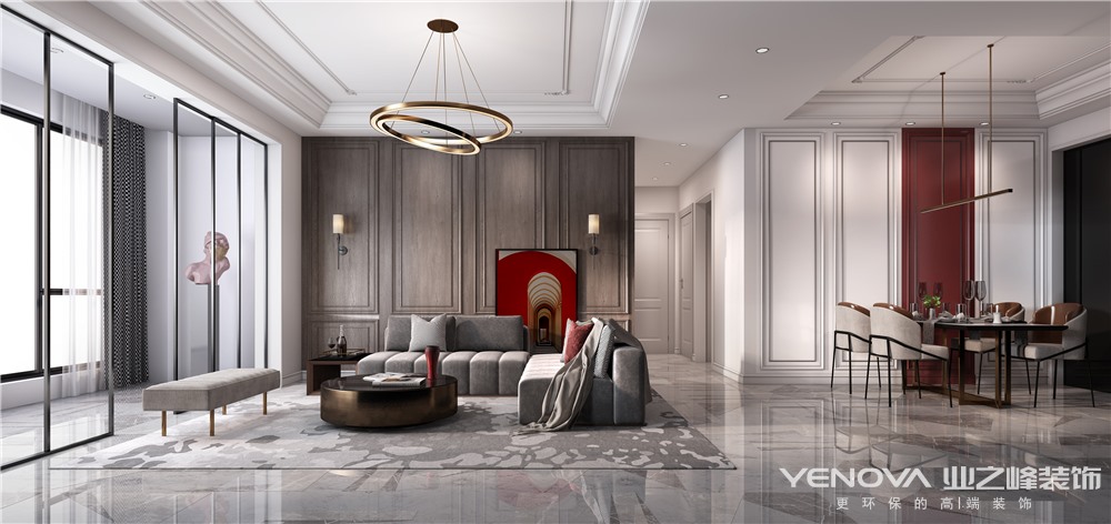 阳光透过白色窗帘,倾泻一室,绿植和孩童嬉笑,点亮房间活力,父母幸福围,岁月正好,微风不躁,轻奢主义齐聚品质优雅,带来四代同堂美好天伦时光。任何形式都拥有自身的判断性内核,空间本身也可以作为导向性的尺度。形有涯而意无涯,心之所想,形之所现。从来没有固定的形态,所有的形式、表象都是行为演化而来。但是行为往往会发生改变,功能和形式就会随之转变。一件表达了设计师对生活本体的认识,蕴含了对未来方式的思考,及表现出包容性的作品本身就是空间与结构的组织与形式取代语言所表达的生活态度。