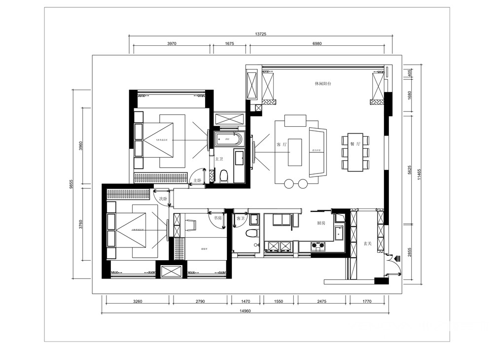 小区:两江国际 面积:130㎡ 户型:三居 风格:法式风格