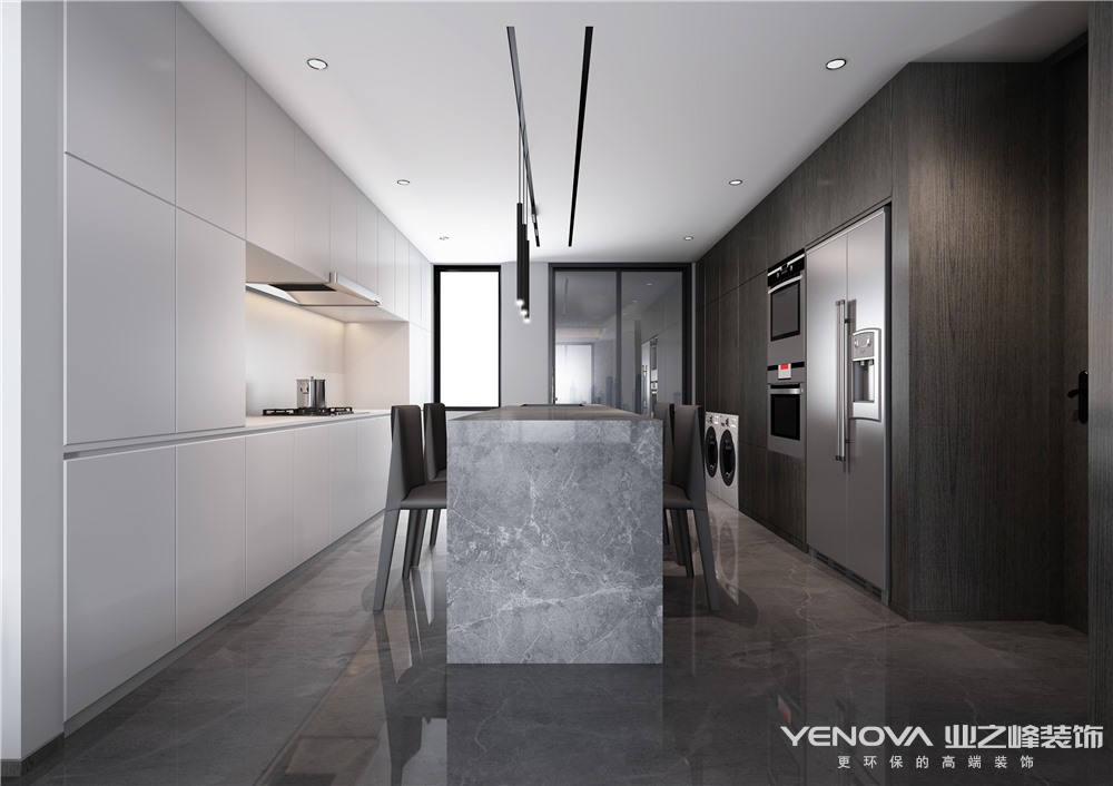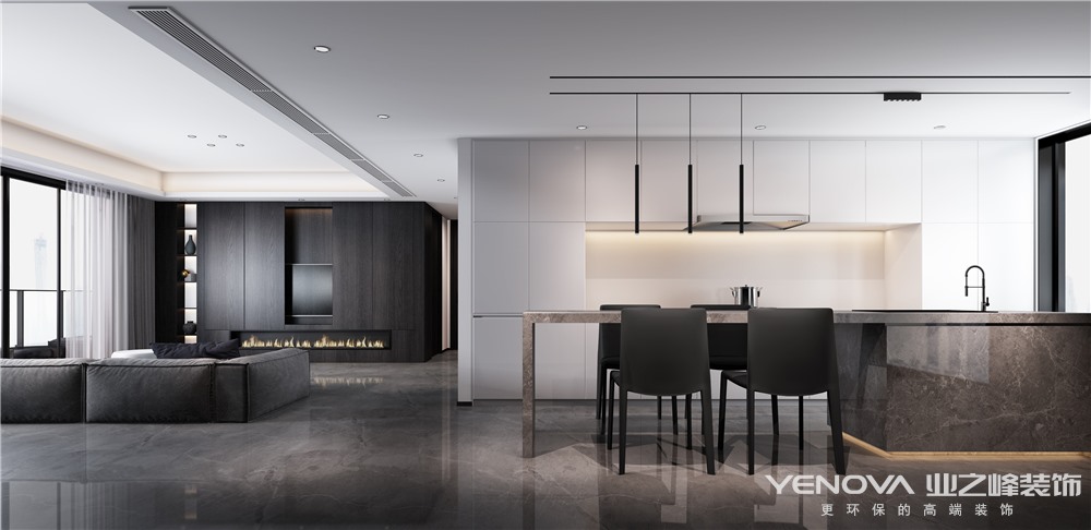 此案充分感受自然光感、空间层次,为了给予屋主明亮、不显压迫的生活氛围,整体采用黑、白、灰色调打底,减去大面积的隔间,再分区添加带有冷冽感大理石、金属、玻璃做收敛,使跳色或对比材质展现细腻层次,塑造俐落具有穿透性意象,而光源也是设计重点之一,善用原本采光之外,添加光束、灯条辅助照明,让简约空间蕴含多道深邃景深。