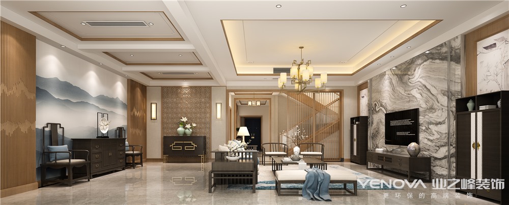 小区:遂宁市滨江河畔城北 面积:383㎡ 户型:别墅 风格:新中式风格