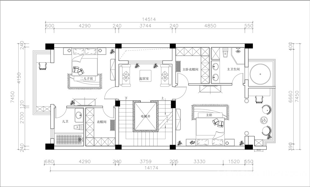 中海城南官邸地处成都市高新区交子大道119号,位于城南黄金地段,交通便捷,环境优美。此案为联排七层别墅,地下两层,地上五层。后方拥有花园,通风采光好,户型方正,结构合理,空间高,是一套不可多得的经典户型。业主为一对年轻夫妇,从事路桥工程的生意人,典型的知识分子,思想活跃,品味高雅,喜欢沉稳内敛的文化底蕴。本方案在设计手法上,设计师充分融合了浓郁的欧陆风情与浪漫的西式情调,同时巧妙地融入了中式简约主义的利落与秀美,同时有意识地掩盖了表面的浮华,恰到好处,只为诠释雅致的居住空间新理念。用浅橙黄色的整体色调,充分体现出业主的文化内涵和生活品质。