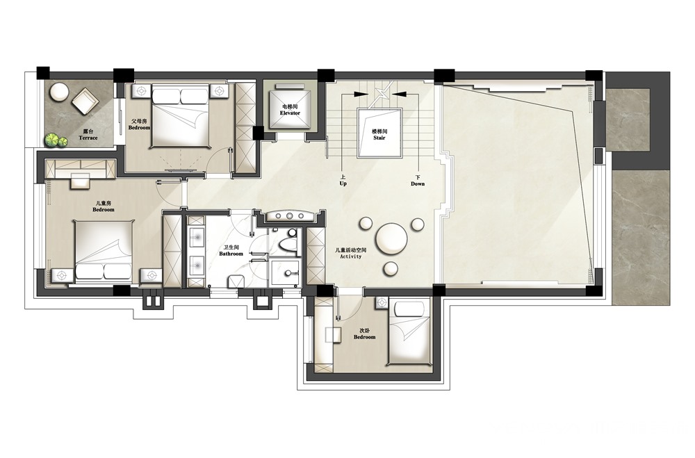 小区:融创长滩壹号 面积:1026㎡ 户型:别墅 风格:轻奢风格