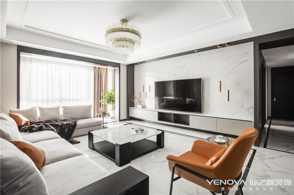 本案为现代风格,简约的硬装干净利落,整体基调以黑白为主配搭香槟金色系,简约时尚中又体现出业主对生活的细致追求。