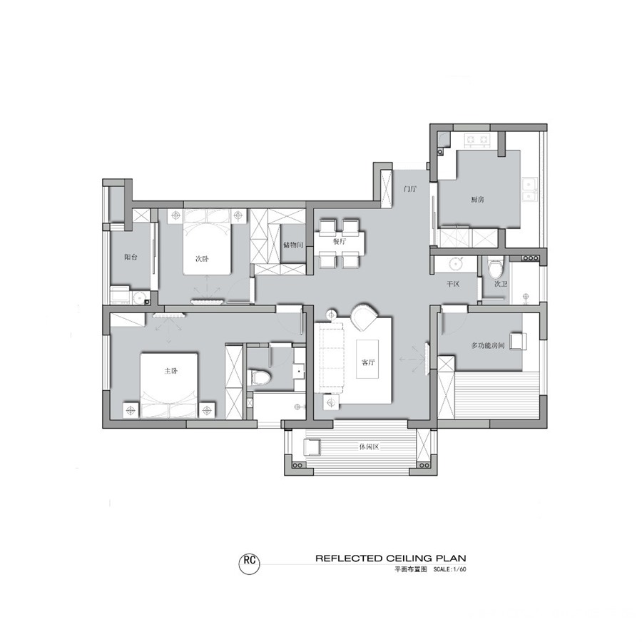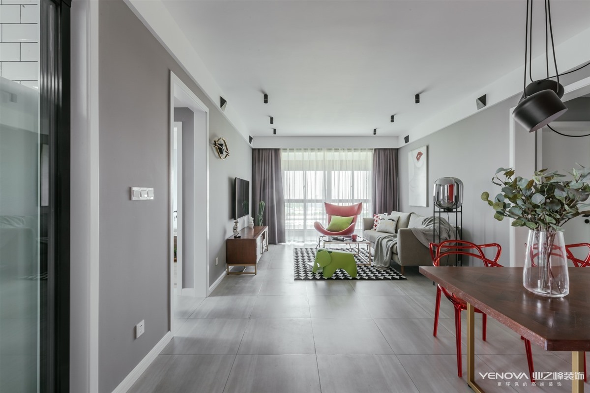 从户型的原始结构上分析,这是目前比较常规的品字形户型,各个空间分区已经非常的明确也比较规整,动线流畅,畅通无阻,这对于后面的动能区的划分以及布局都比较比较有利,户型唯一的缺陷就是餐厅采光不够,没有窗户,无法进行自然采光和通风,后期从色彩及灯光上进行改善