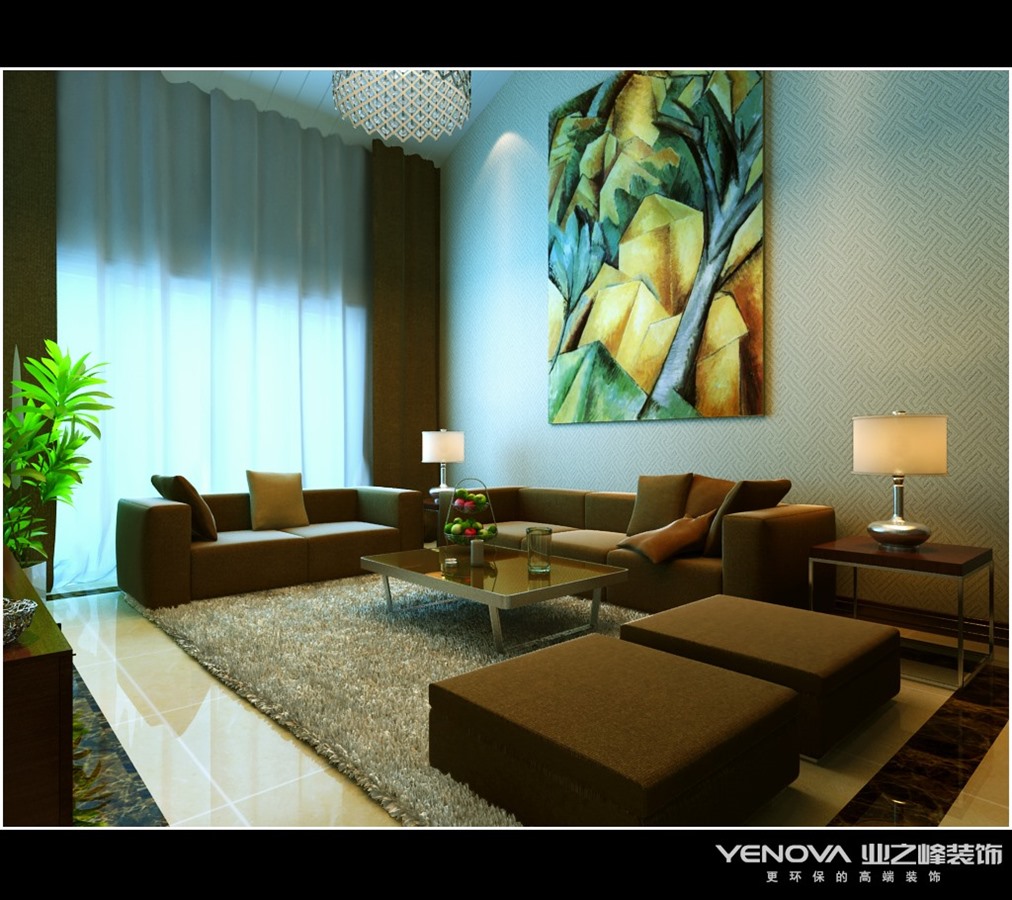 设计营造出一种和谐、大气而不失温馨浪漫的居室环境,让置身其中的人能感受到高雅舒适。设计由上到下,由里到内分区清楚,而且每个空间都显得生动不重复,用现代设计手法完善现代布局,使得每个空间各得其所。运用特殊材料也是本案一大特色,灯具的造型、家具的选购以及植物和艺术画的陈列配置组合在一起为流畅的空间营造合适氛围。