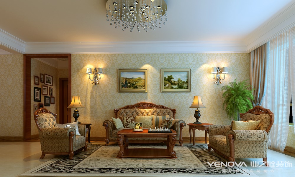 小区:名士豪庭 面积:180㎡ 户型:四居 风格:美式风格