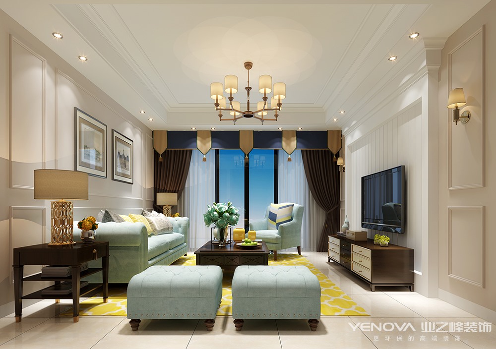 装修热线:0791-86296016,本案的女主人对美式情有独钟,喜欢清爽干净的居住空间,不需要喧嚣的奢华,只需要简单安静的生活.设计的色调以米白色,再配上少亮的咖色,米色,加以撞击,使整个空间产生明高的对比,给人以眼前一亮的效果,沙发墙的石膏线造形,充满了时尚感,且性价比极高。简约的设计让心灵在喧嚣的都市里得到一种纯净和安宁,摒弃了繁琐,显示出井然有序的理性空间。