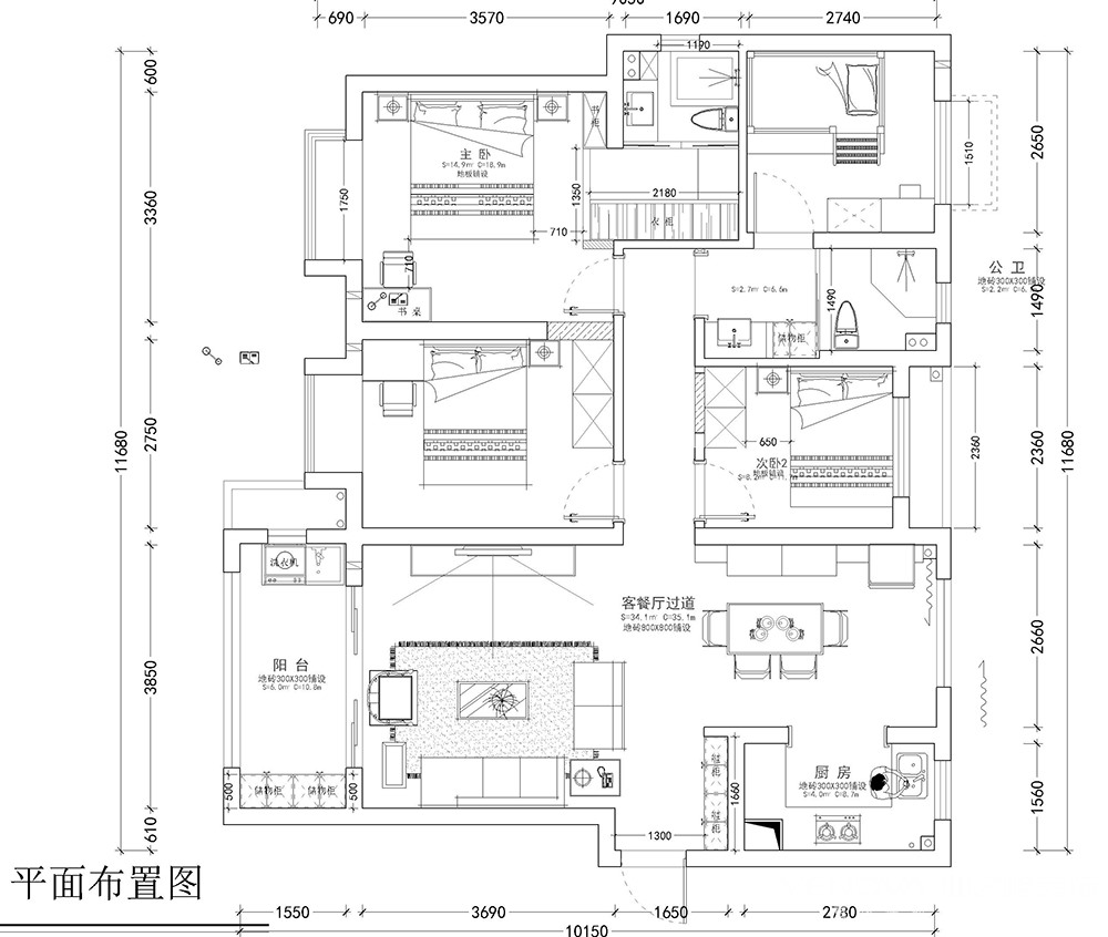 小区:联发君悦华庭 面积:124㎡ 户型:四居 风格: