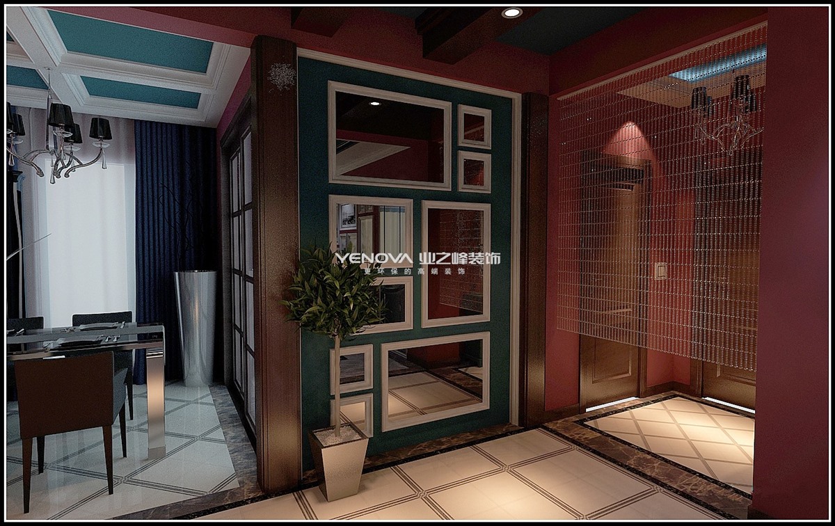 客户想改造客餐厅空间。为了打造符合屋主期待的【冲突美学】,大胆地选择红、孔雀蓝色系的壁纸及涂漆,风格强烈的主题设计。轻谱出氛围独具的异国情调。