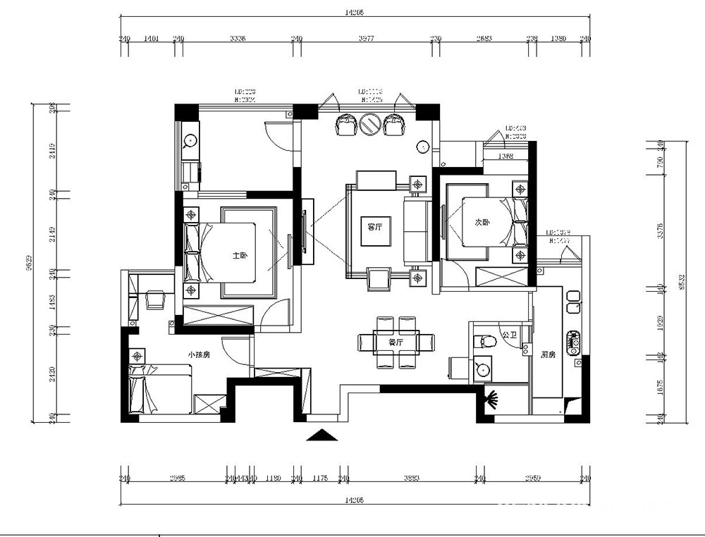 小区:九龙湖花园 面积:113㎡ 户型:三居 风格:现代简约风格